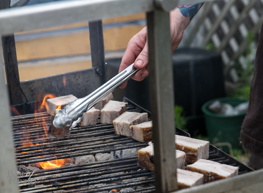 My favourite dish was by Chef Derek who had my heart with his pork belly creation. Thick cuts of piggy were brined, enveloped in smoke, sous-vided, then finished off on the charcoal grill. This succulent belly lay on a little garden of kale and was surrounded by pickled plums. The pork was sprinkled with crackling tidbits and brought tears of joy to my eyes.