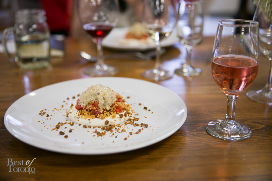 - Strawberry Poached Rhubarb, Vanilla Cremeux & Pie Crust Crumble paired with Rosehall Run 2012