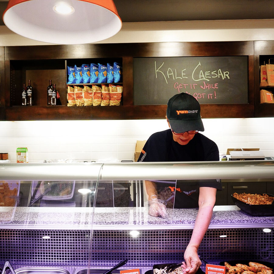 Michael Abramson, the chef and creator of YamChops, along with his wife, sold their advertising agency for 27 years to launch The SixCob (Six Communities of Business Inc). YamChops was launched as a community of The SixCob. He humbly remarked that the family venture has been an exciting journey, and continues to explain that YamChops is not limited to vegetarians or vegans, but caters to anyone who wishes to eat more plant-based foods. I couldn’t agree more after seeing the many choices of meat alternatives and other delectables this charming little, ma-and-pa shop has to offer.