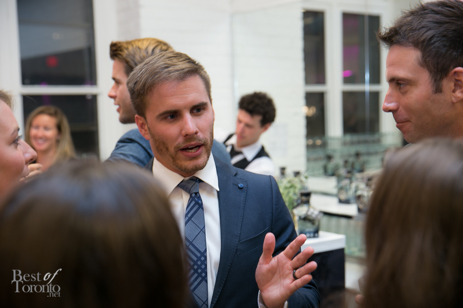 The full downpour of rain didn’t stop the red carpet photo ops outside before heading into Flirty Girl Fitness on King West. The main attraction was the stars of the popular TV show Bachelorette and current stars of Bachelor in Paradise. Chris Bukowski, Zack Kalter, Graham Bunn, Robert Graham and Michael Stagliano were flown in from Los Angeles by Eligible Magazine to make this night happen in the midst of TIFF.