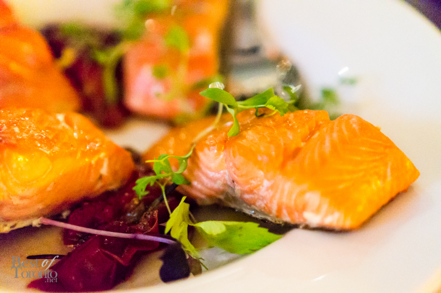 On the culinary front, the menu was conceived by Waxman and Executive Chef Matt Robertson, combining the simplicity of California cuisine with local Canadian ingredients. These ingredients include seasonal Ontario fruits and vegetables, cheeses from nearby dairy farms, and shellfish from the Maritimes. During our preview, we were able to sample some items from the menu, which changes daily.