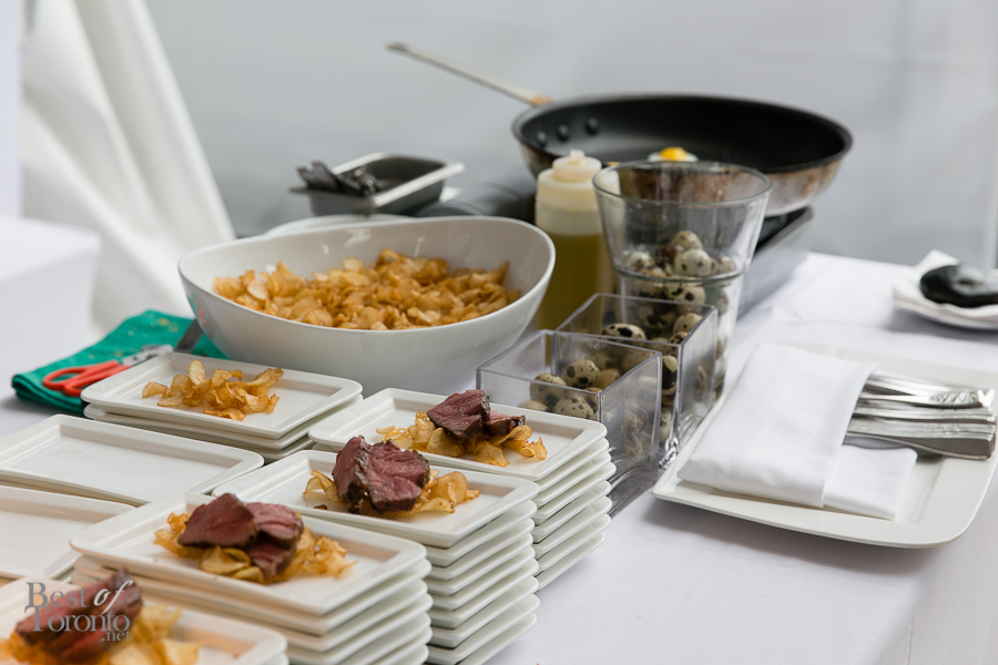 - Quail egg and steak station