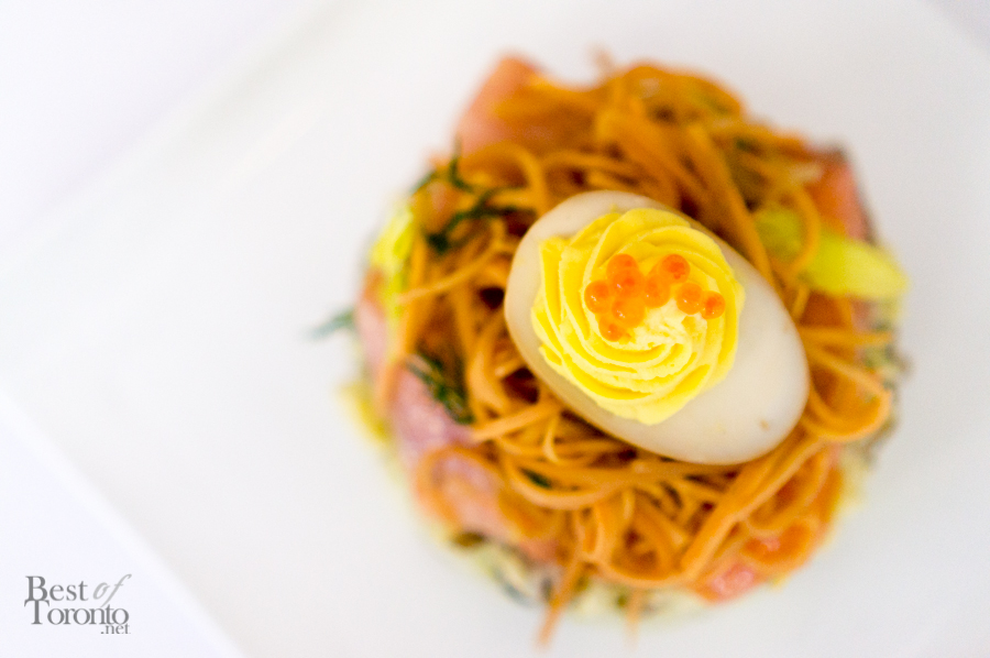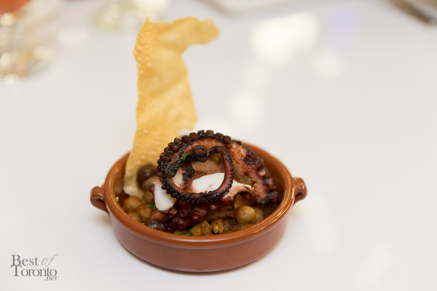 The North American dishes were good, but didn’t stand out as much as the others. The BC trout salad, which had the trout in combination with a fingerling potato salad and a deviled egg didn’t quite mesh together texturally for me. The Chicken Salad had a giant crouton and seared chicken mousse, and while it looked great on the plate, it would have been easier to eat with just normal-sized croutons. Moving on to Europe, the Fois Gras Terrine came next. It was rich, creamy and delicious, just as you would expect. The dishes that really shone were the Spanish tapas. The Chorizo Croquettas, which we actually sampled during the media night on September 23rd, are some of the best croquettes I’ve ever had. They were soft and smooth on the inside, and lightly crispy on the outside. They disappeared quite fast, so sadly I was not able to take any photos. The Manchego Churros were also a favourite of mine.