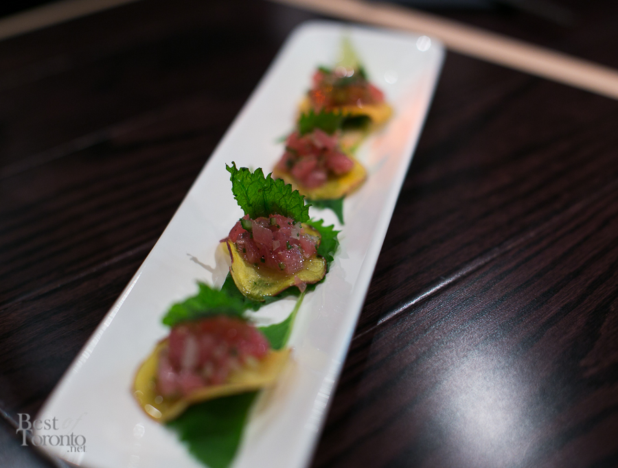 - Tuna tartar on beet chips | Photo: Nick Lee