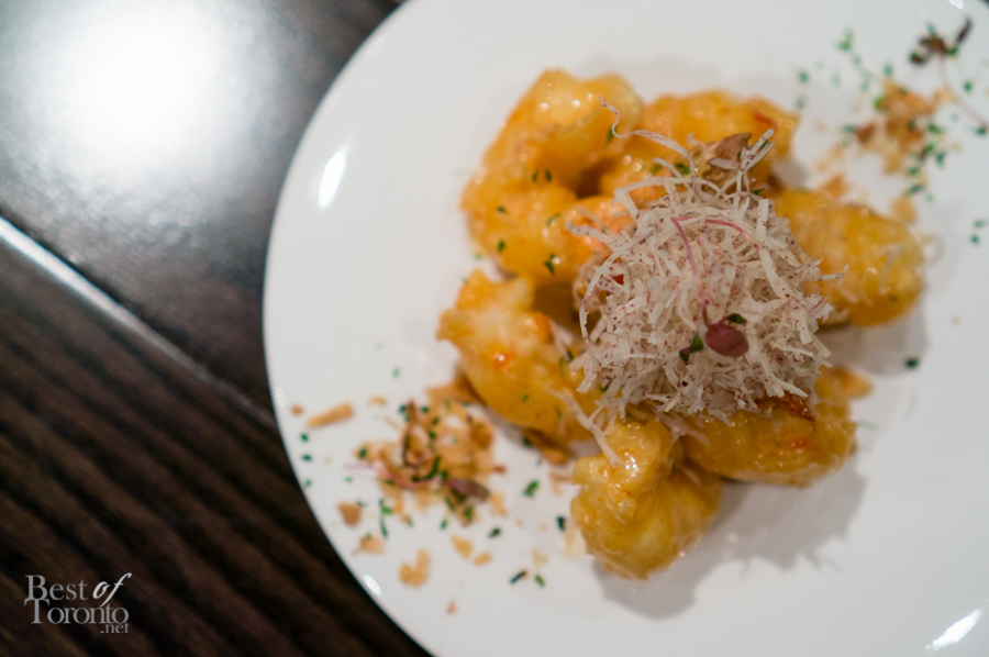 What we were most looking forward to though was the tapas, and we were not disappointed. The albacore tuna paté with deep black sesame wonton skins came first. The wontons were crisp and light, and a great complement to the texture and flavour of the paté. The deep fried tiger shrimp tossed in chilli mayonnaise was one of my favourite dishes of the night. It’s the deep fried shrimp that you expect, but combined with the chilli mayonnaise the subtle heat turns this dish into something entirely new and addictive. Order more than one of these if you’re dining with a lot friends.