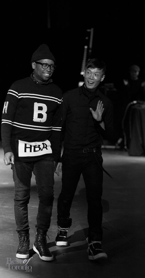 Putting the “show” back in fashion show, at the end the models walked behind closed curtains and were soon unveiled on the stage posing on boxes, ladders and other equipment. As the curtain parted, disco balls shone bright, ‘Mo Money, Mo Problems’ rang out from the speakers and silver confetti blew up into the air to end the evening with a bang.