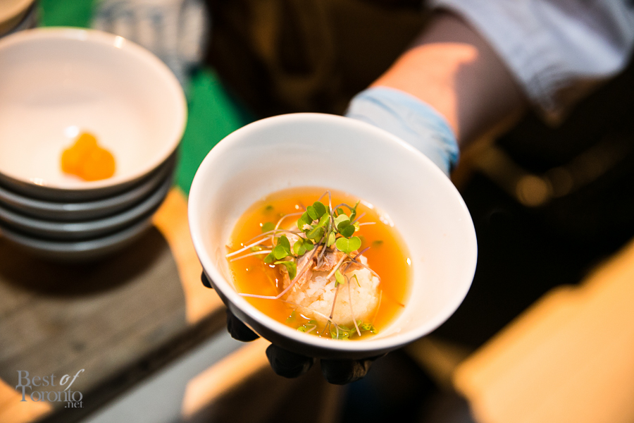 Being the top-notch food-focused charity gala that it is, there were tons of amazing dishes to try. This includes the one in the photo above with trout donated by Blue Goose Foods prepared by The Stop CFC’s own Chef Scott MacNeil. They also did an amazing job last year with poached trout olive oil.