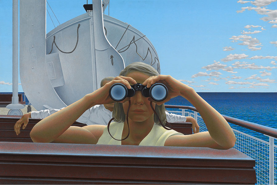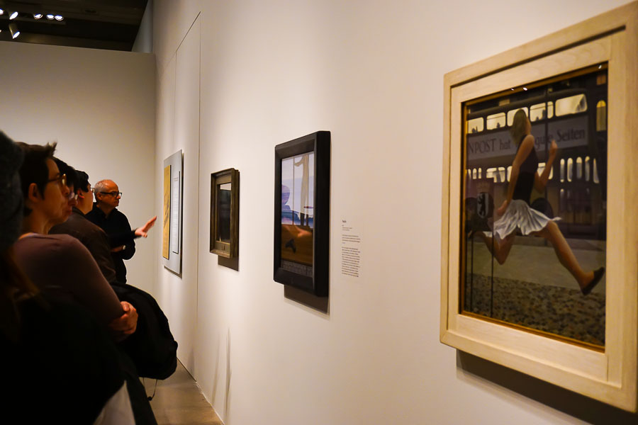 As a respected WWII veteran and war artist, Colville (1920 – 2013) drew his inspiration from the world around him, transforming seemingly mundane figures and events of everyday life into archetypes of the modern condition. Women appear as central figures in the landscape of his paintings. Most of the female body in Colville’s works is based on his beloved wife of 70 years, Rhoda Wright, who served as the artist’s unfaltering muse. Animals also played a leading role in Colville’s daily life, and hence in his art. The artist viewed animals as a symbol of innocence, though they can act as powerful warning beacons and signaling potential tragedy – most notable in Horse and Train. Much of Colville’s craft had a direct impact on contemporary filmmakers such as Stanley Kubrick, Wes Anderson, and the Coen Brothers. Much like the artist, the detail-obsessed Kubrick placed four of Colville’s paintings in critical scenes in The Shining. Can you spot them?