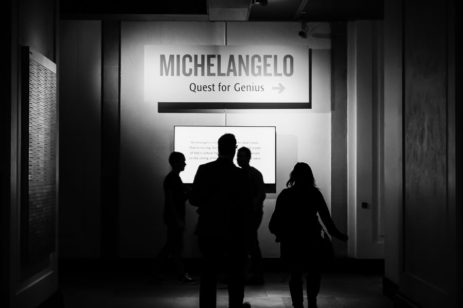 Using 3D computer animation and technology provided by LG Electronics, the exhibition also brings to life several of Michelangelo’s unfinished architectural designs.