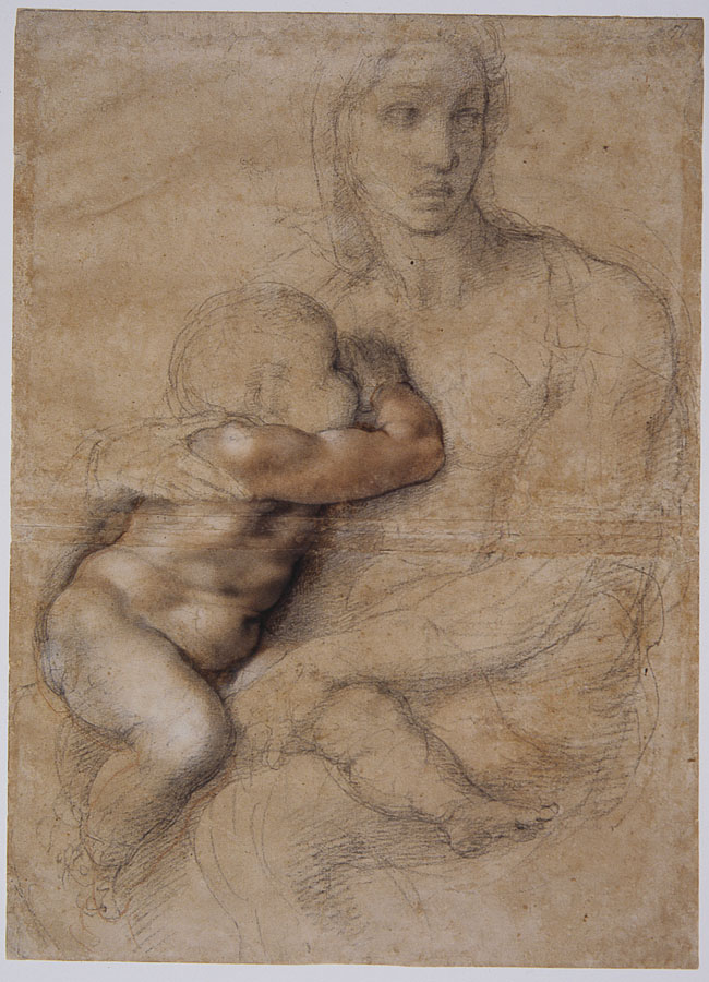 Throughout Michelangelo’s formidable 77-year career, he worked as a painter, architect, sculptor, engineer, and even as a poet! His passion filled his desire to draw daily and constantly to perfect his skills. The artist even (illegally) dissected cadavers to help understand the realism of a human body. Conveniently, paper had become affordable for the first time during his generation. As a result, Michelangelo drew on any piece of paper at hand, on both sides, and even over older drawings. You can check out many example of this at the gallery. My personal favourite piece at the exhibit would have to be Cleopatra, where Michelangelo sketched the contorted face of the dying Cleopatra on the back – only a recent discovery revealed in 1988.