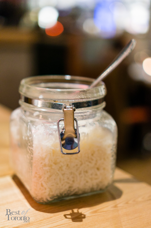 Along with the mains were served some side dishes. There were the usual Indian sides like naan, and basmati rice still charmingly served in a mason jar (which also keeps the rice warm and moist). The okra fries were a nice surprise – I had never seen okra prepared this way before. The yoghurt dip complemented the fries perfectly. Finally there was the French beans, which were topped with caramelized onions, turmeric, and coconut. It was really great to have some choices for sides that aren’t just the everyday Indian staples.
