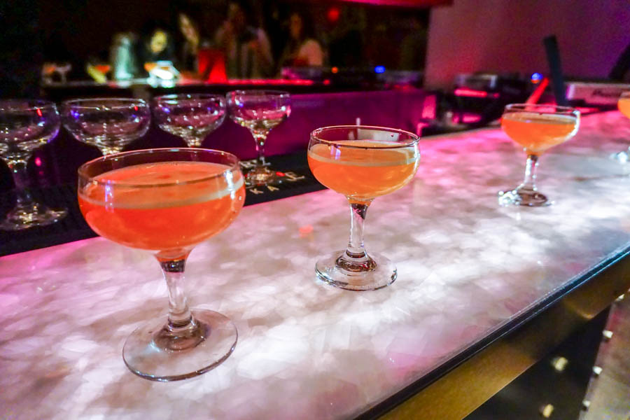 Located on the corner of King and Bathurst, in the historic Bank of Toronto building, Blowfish received an overhaul and extended its former patio to bring its outdoor space inside to create the new cocktail bar lounge, BarFish. The well-stocked bar stretches across Barfish’s long narrow space, accommodating around 60 people, though the soaring ceiling in this intimate sprawl reveals a much more grandiose loft style.