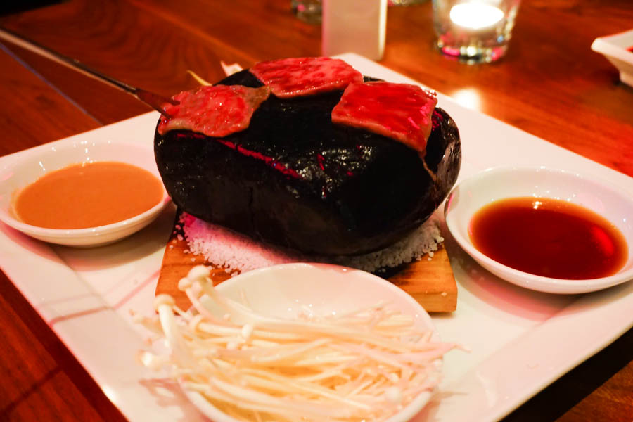 The most entertaining dish of the night, Japanese A3 Wagyu Strip Loin, was brought before us with a scorching hot stone. This grill-it-yourself creation is the perfect social dish to share, not to mention fun to cook. The beautiful marbled wagyu slices sizzled with fury on the hot stone – a melting spectacle much needed for this chilly winter.