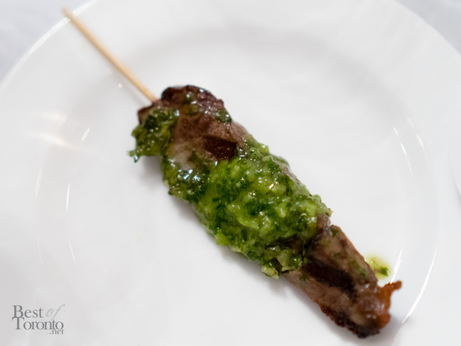 We had the chance to sample the 2012 and 2011 version of the Montes Alpha Cabernet Sauvignon, the former of which was sustainable dry-farmed. There was indeed a noticeable difference in taste, and I actually did prefer the 2012 for its flavour and smoothness. We also were able to sample other wines from Montes, including the 2012 Outer Limits Sauvignon Blanc, whose grapes came from coastal wineries, and our favourite – the 2012 Purple Angel. Food pairings included traditional Chilean foods like a refreshing ceviche, a roasted vegetable empanada, and a coconut flan with dulce de leche sauce.
