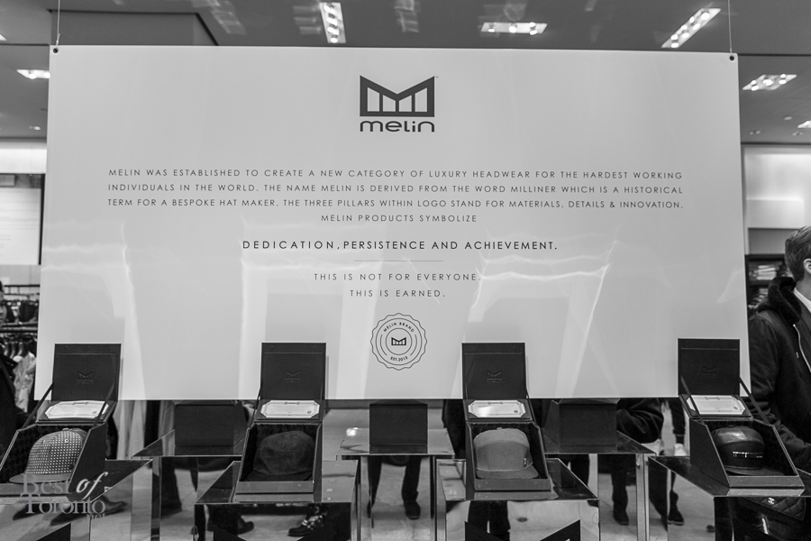 On Wednesday March 11th, 2015, the fashion crowd gathered to celebrate Holt Renfrew Bloor’s new contemporary menswear space and the latest offering from Melin Brand headwear. The new menswear space is home to accessible contemporary brands including; Acne Studios, Kenzo and Public School NY with a centre-store installation by Melin Brand which featured their latest collection along with portraits of 4 Toronto influencers by Matt Barnes.