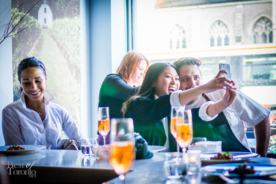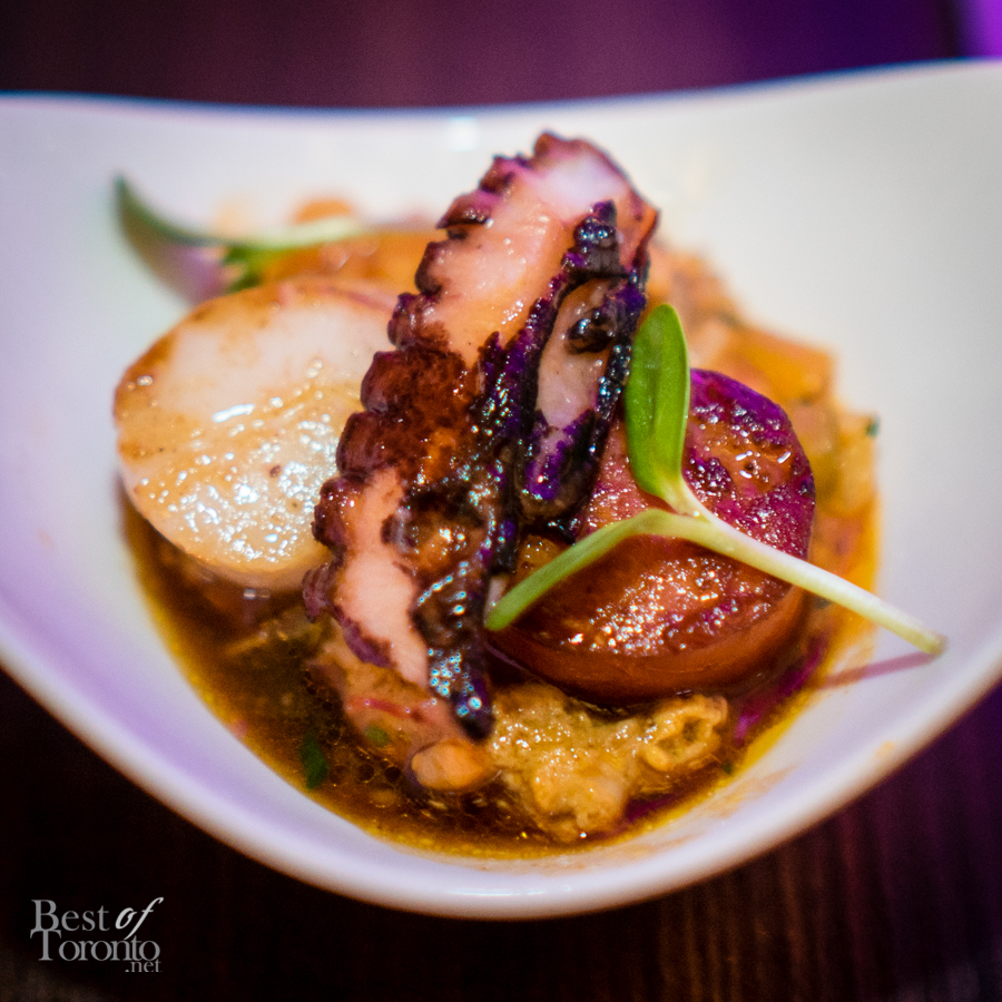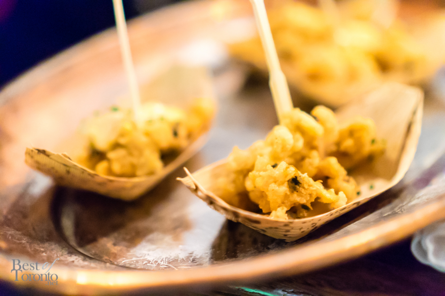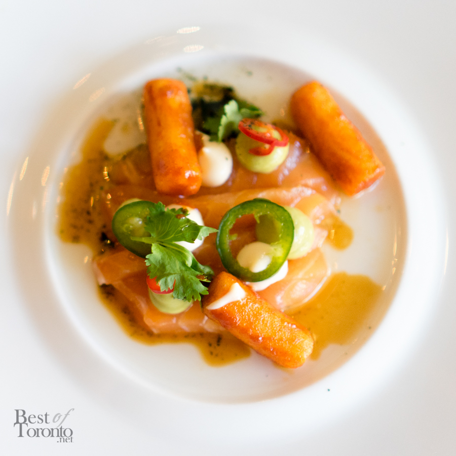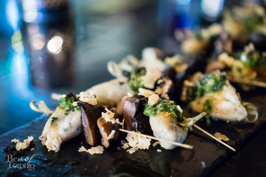 We trekked through the city by foot and by bus in Harbord Village and the Financial District, each restaurant being revealed in turn. We spent roughly half an hour at each destination for a sampling of their dishes. Suffice it to say, all of the plates were delicious, along with their cocktail pairings. Some of my personal favourites are the salmon sashimi with Korean fried daikon and tamari emulsion from Splendido, and the Oliver Sacks cocktail from THR & Co. The dishes from the six restaurants were diverse and complex, and based on the quality tonight and the calibre of the other participating chefs and restaurants, there’s much to look forward to at this summer’s festival.