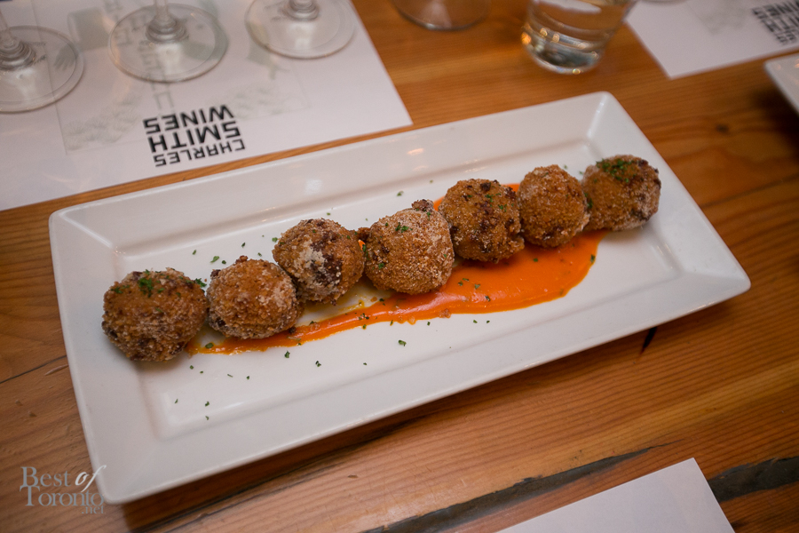 I was lucky to be part of an intimate winemakers dinner on March 24th, 2015 at the Yonge-Dundas location with the man of the evening, Charles Smith, himself. He had come from an Breakfast Television segment that same morning as well. Milestones Executive Chef Jason Russo was also in attendance along with Milestones COO Mark Findlay. To go along with a variety of wines from the Charles Smith Portfolio, Milestones paired their signature plates and we dined family style with a variety dishes.