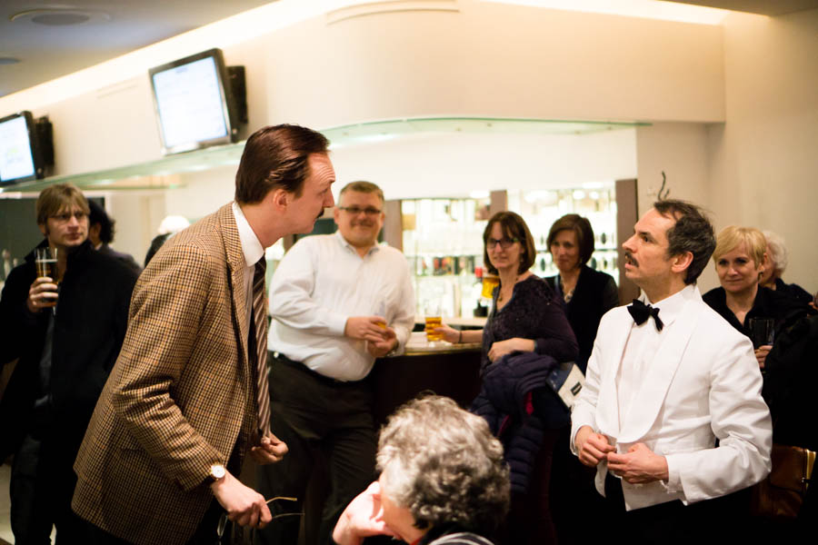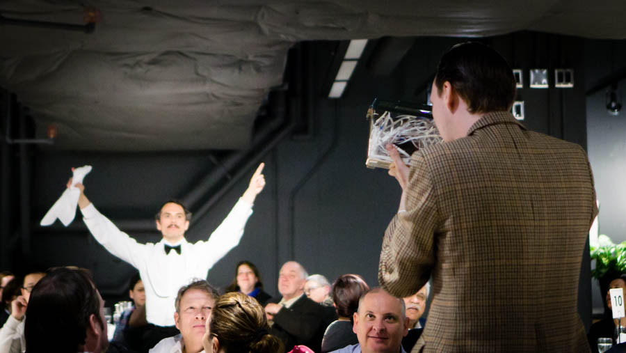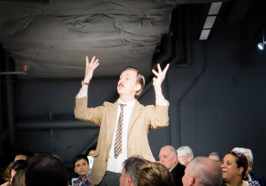 The evening started with guests arriving at the Sony Centre, where snacks and drinks were available while they waited. Suddenly out of nowhere, decked out in their 70’s tweed outfits and fully in character, Basil and Sybil emerged and began greeting the hungry visitors. The dazed and confused Manuel trailed behind, taking demanding orders from the couple. Hailed from Barcelona, Manuel muddled Basil’s every instruction, like collecting the audience’s reading glasses, instead of its drinking glasses.