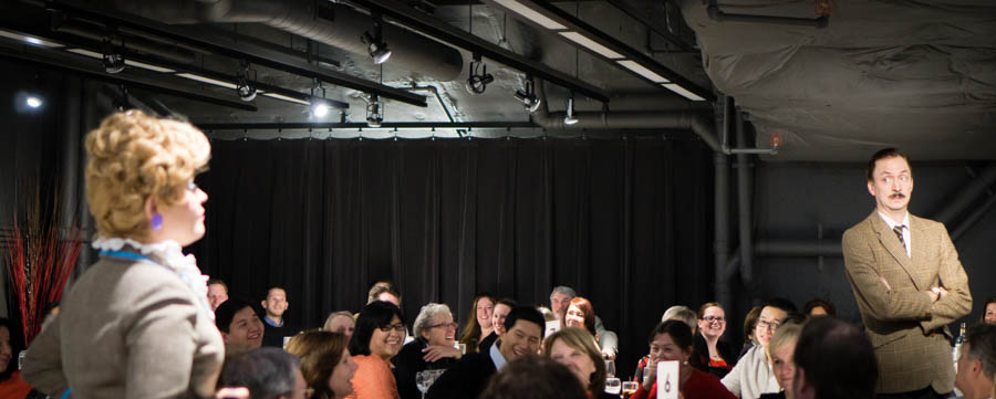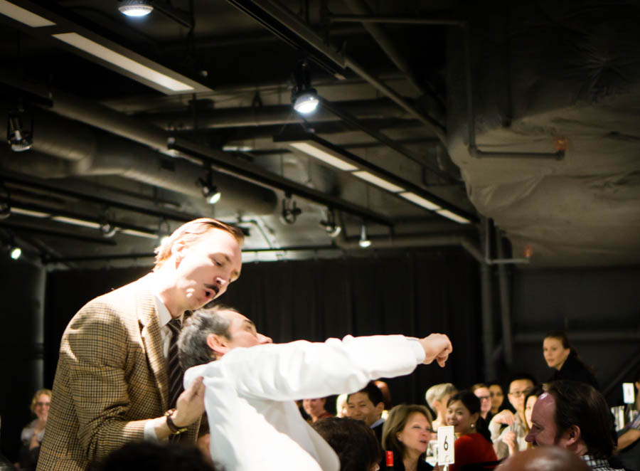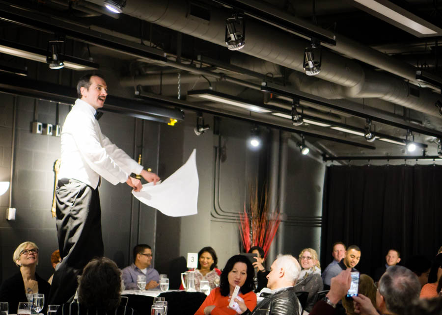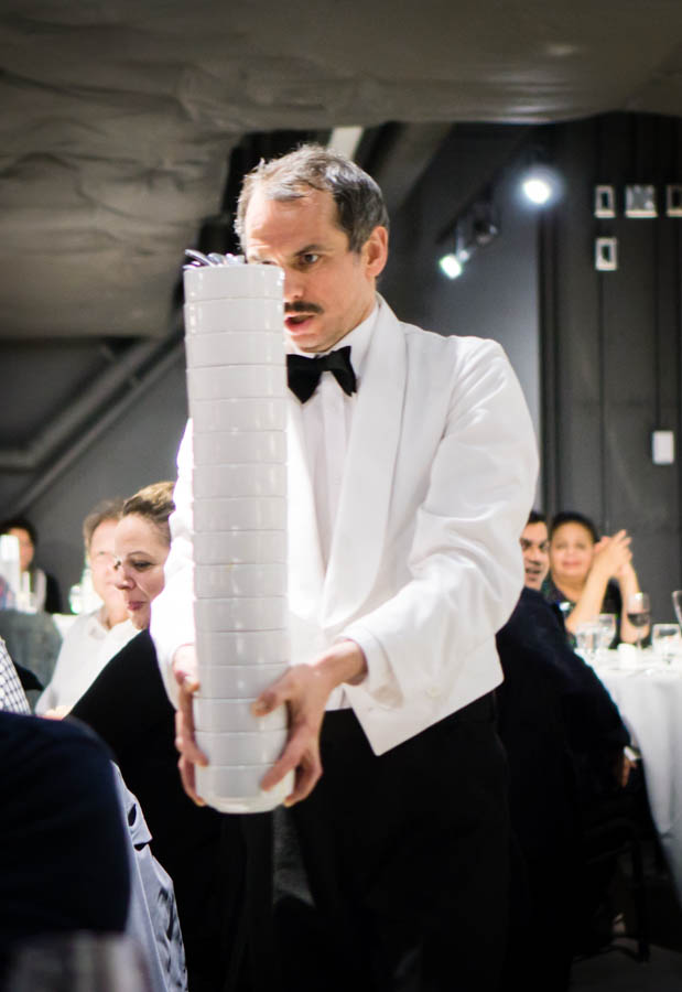 The trio sauntered along, holding brief but intimate conversations with guests, eventually ushered everyone to the dining area about an hour into the show. I’d recommend eating something light before going to the show. Once everyone was seated in an orderly fashion, that’s when the shenanigans really began.