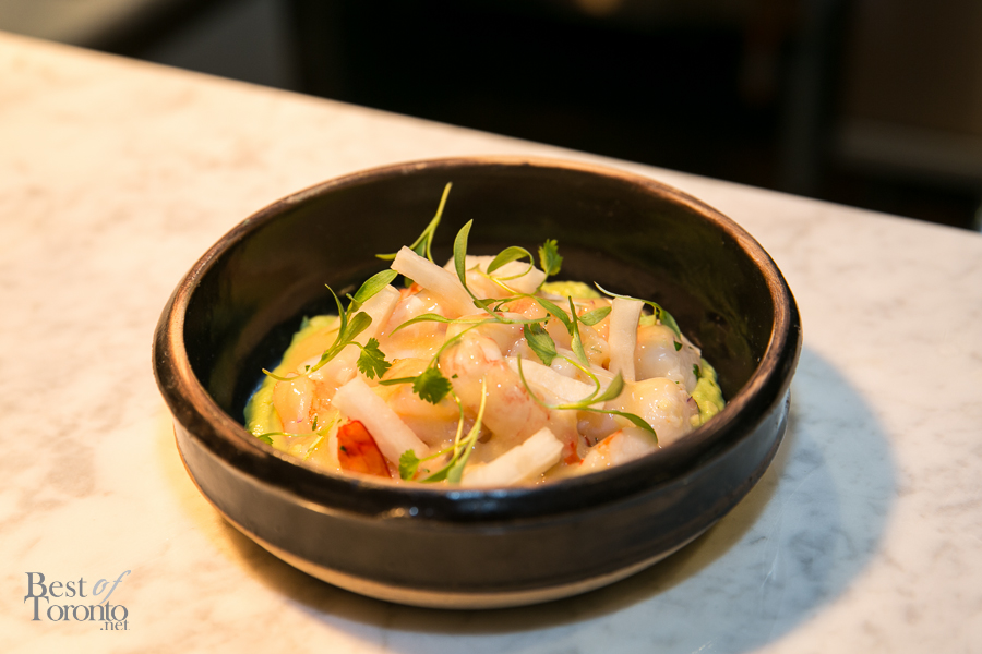- “Ceviche” with spot and tiger prawns, bay scallops, daikon, “jolo” butter