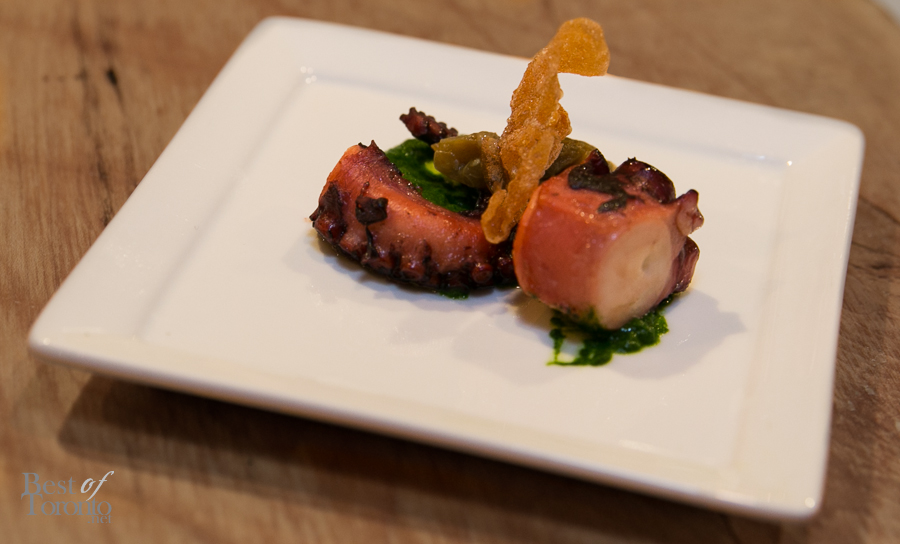 - “Octopus” with chargrilled octopus, choy sum chimichurri, “yu heung” eggplant