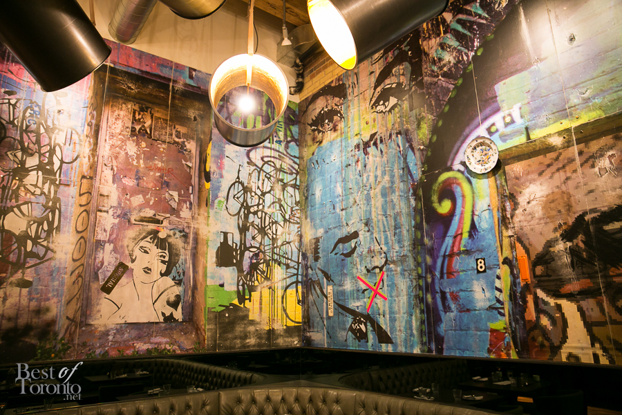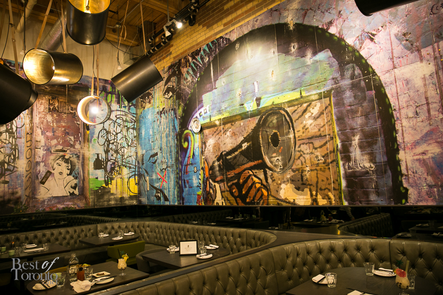 Occupying the former site of Strada 241, at the edge of Chinatown (241 Spadina Avenue), the space is now transformed with modern and Asian flare. A stylish bar immediately welcomes you with ornaments hanging from the ultra high ceiling. Looking at the drink menu, it’s full of funny clichés but one in particular was of interest, Pina Colada Bubble Tea. How amusing! The bubble tea was a pleasant balance of flavours of alcoholic pina colada and bubble tea complete with tapioca – a devilishly cheeky drink.