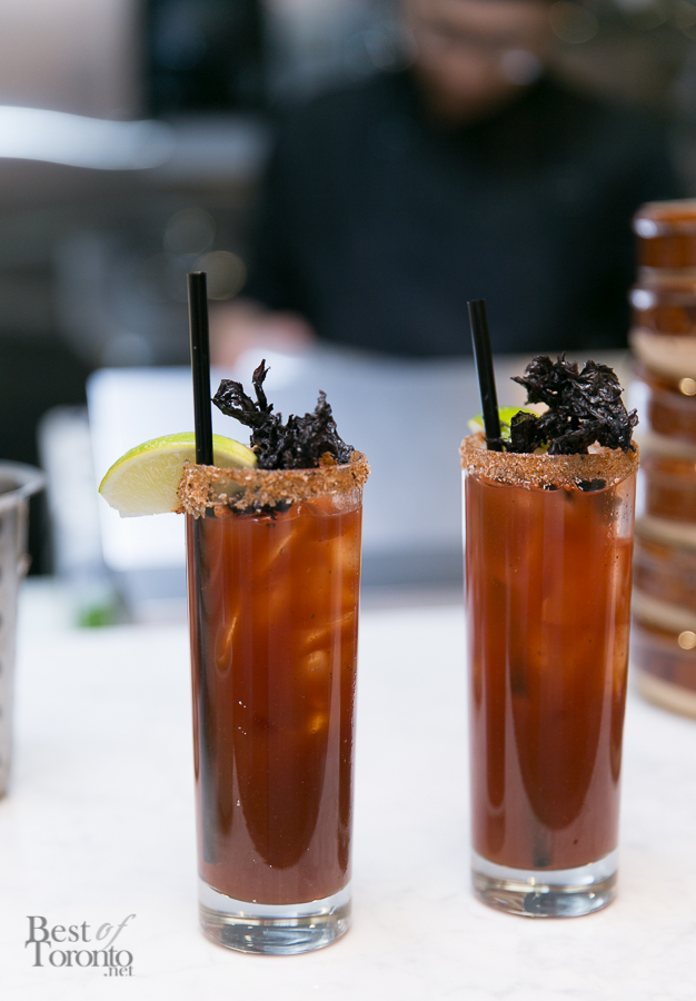 - “510 Caesars” with black garlic, chinese mushroom, infused absolut vodka, R&D chili sauce, hoisin infused worcestershire sauce, lapsang tincture, Mott’s Clamato | Photo: Nick Lee