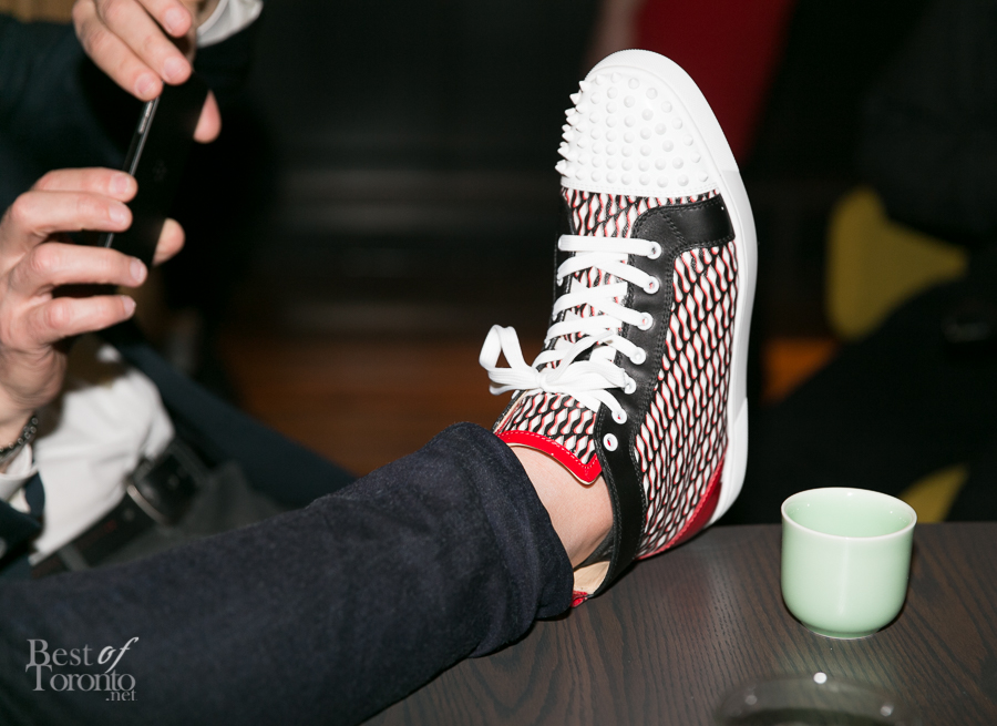 Chef Alvin Leung’s Christian Louboutin sneakers. Michael Bonacini snaps a photo with his phone. Photo: Nick Lee