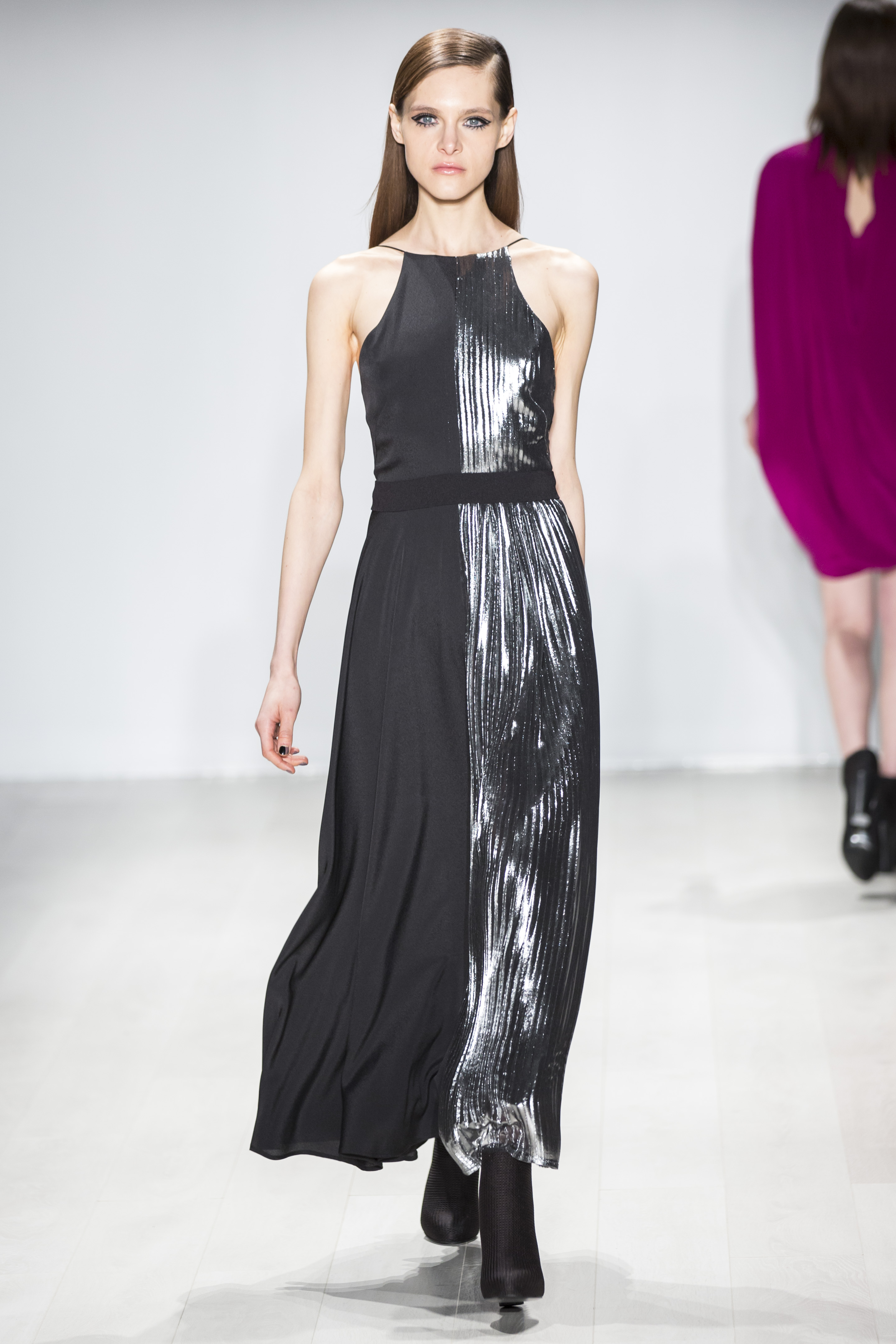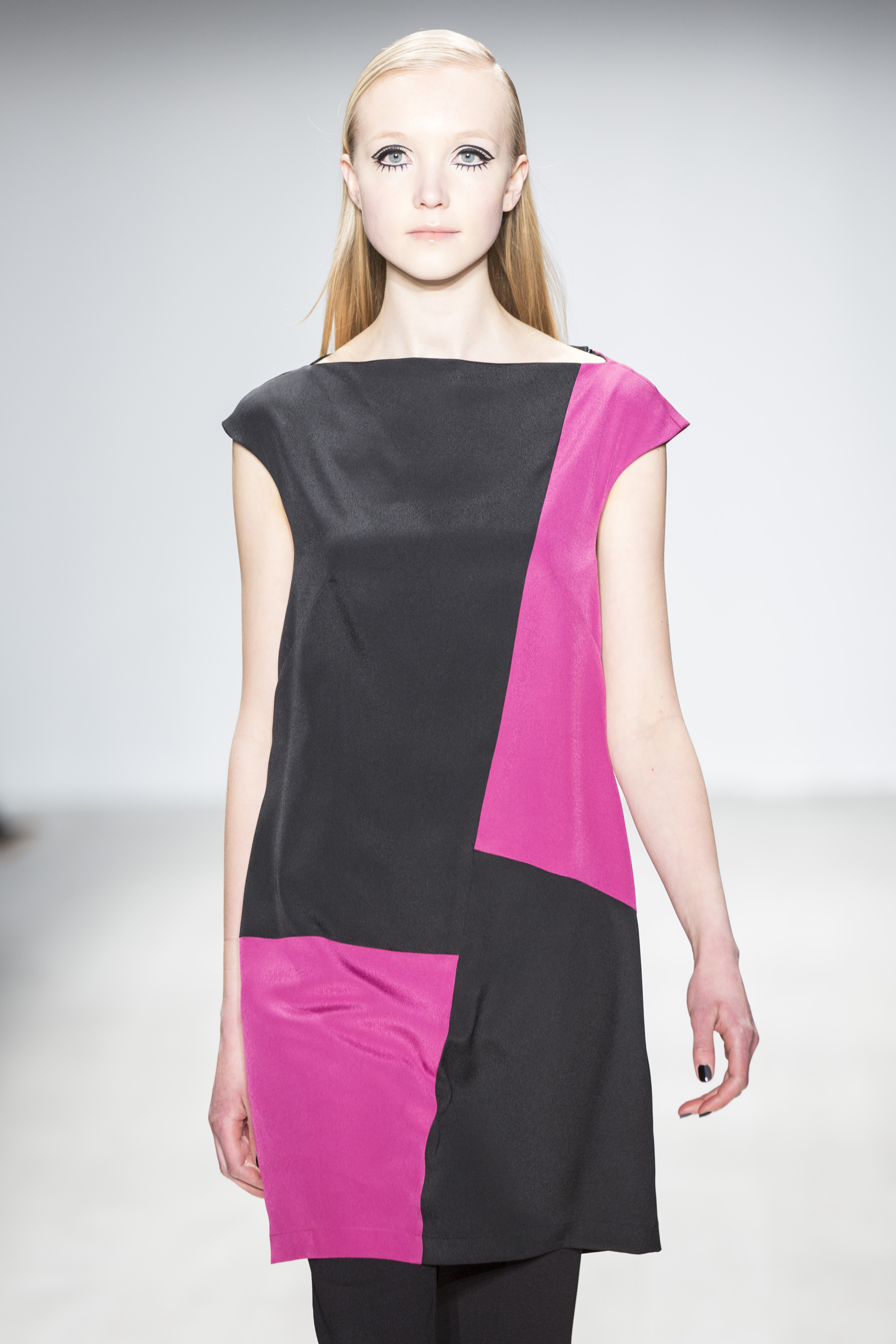 Helder Diego took a sleek slant direction with pink / black tonal edge for next season. Street-chic and cocktail party approved.