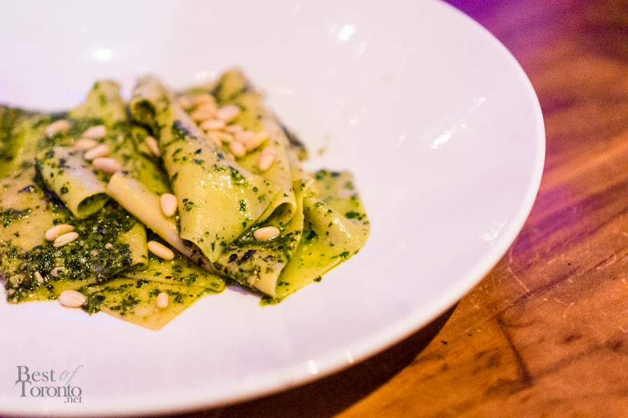 The pizzas were updates to their classics. Instead of the traditional tomato sauce, these used a white sauce. Of the three we sampled, I liked the ‘nduja and rapini pizza for its spiciness and texture. While the topping combinations were great, I would have preferred the crust to be a little bit crisper for a thin crust pizza. For the pasta, the ravioli was very flavourful, with the essence of crab and lobster coming through strongly. Both of the pastas we tried were cooked more al dente than I liked, but that’s a personal preference.