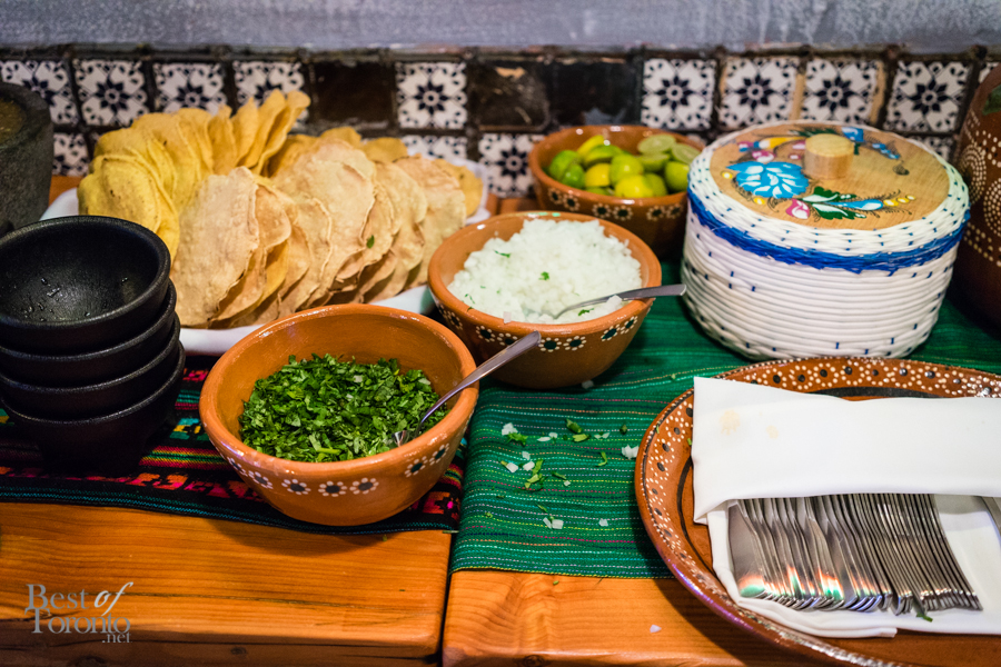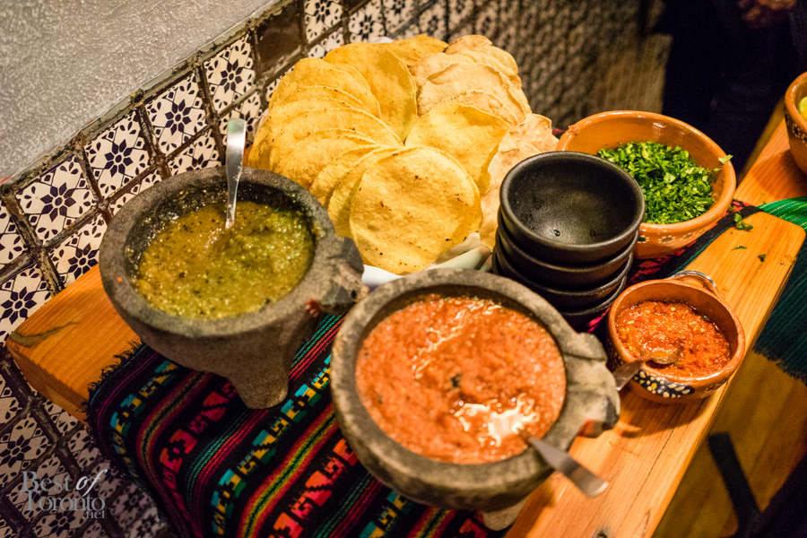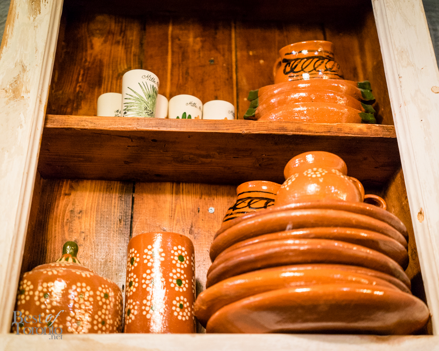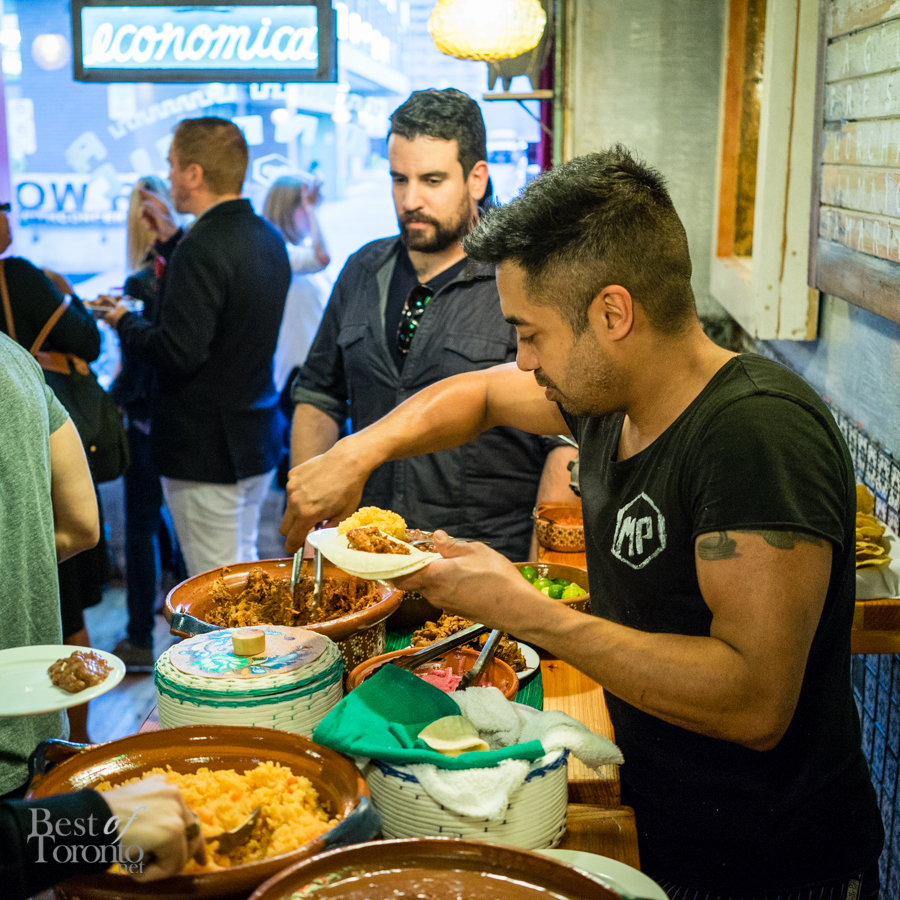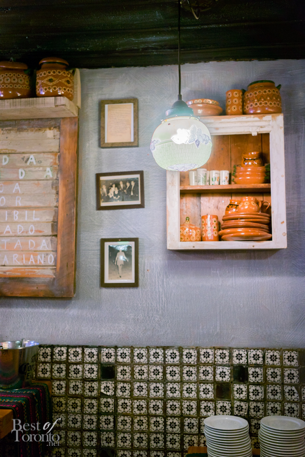 To prepare for his new restaurant, Executive Chef and owner David Sidhu travelled with his team to Mexico to learn about the family-run cocina economicas. They returned from this trip with experience and knowledge to produce authentic Mexican fare, as well as items to furnish the new restaurant to give it a true Mexican feel. The space is quite intimate, decorated with fiesta-coloured tapestries, hand-painted clay pottery, and lots of patterns and textures. Cocina Economica can currently seat 34 inside, and 20 outside on the front patio, with additional seating available upstairs (including a second patio) later this summer.