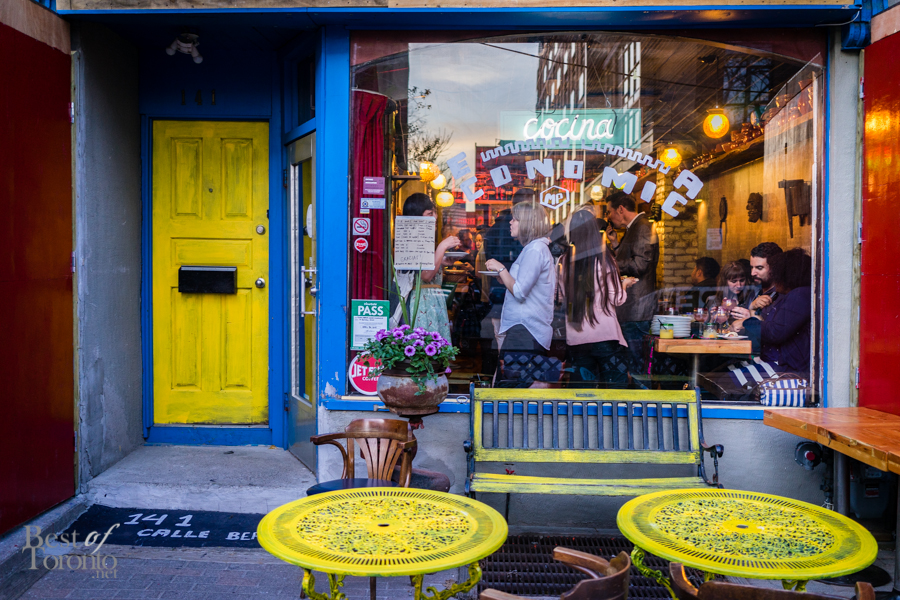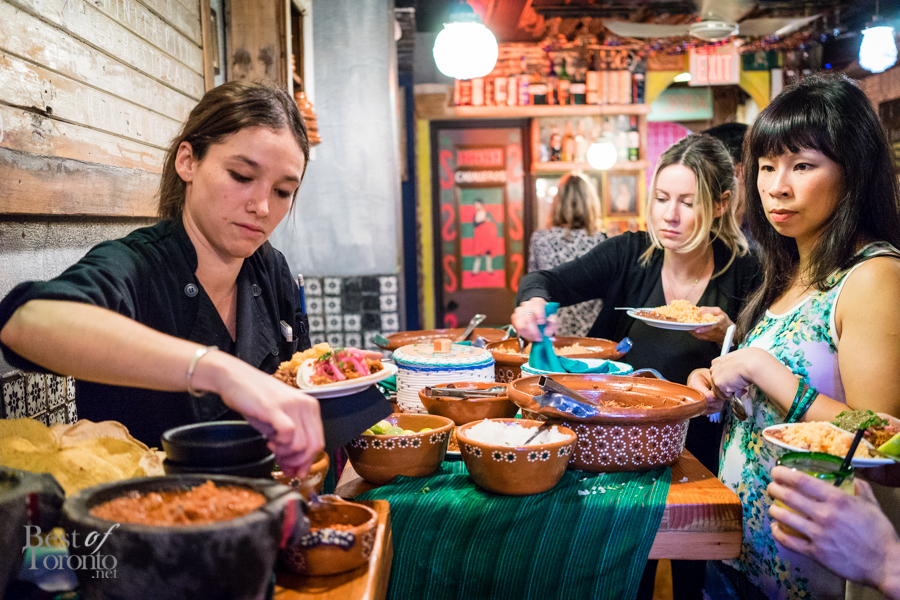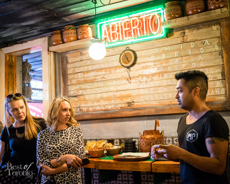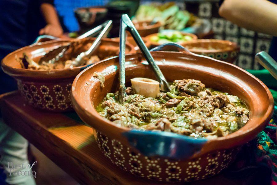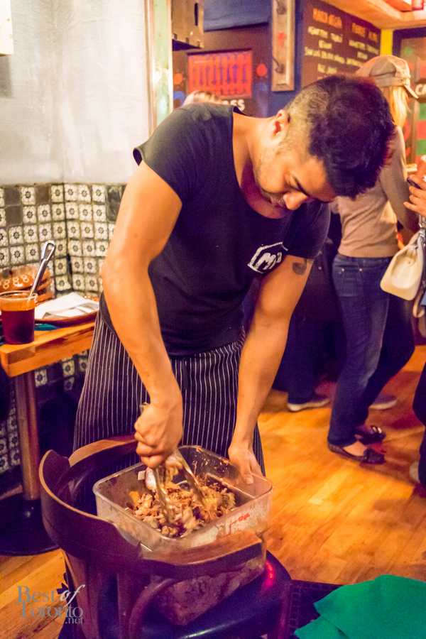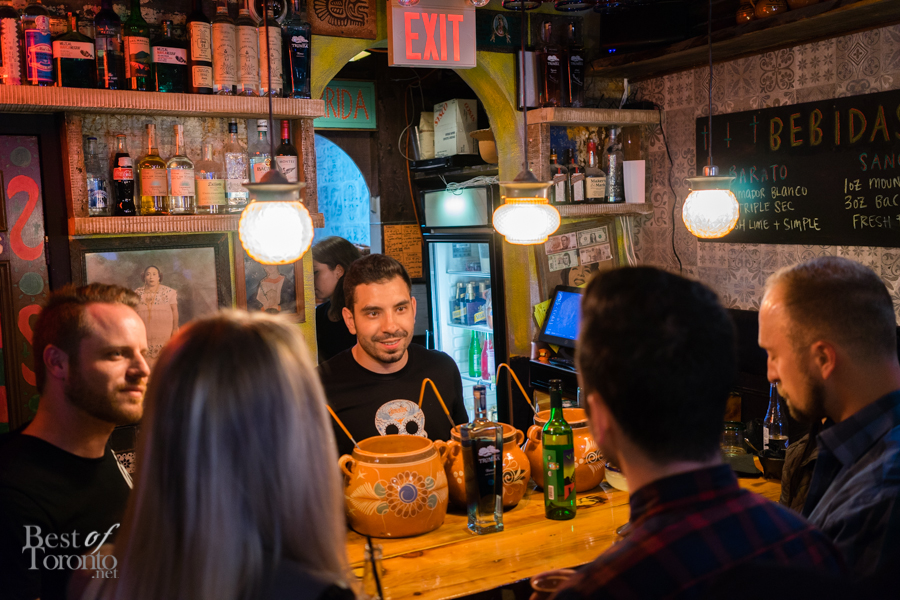 To prepare for his new restaurant, Executive Chef and owner David Sidhu travelled with his team to Mexico to learn about the family-run cocina economicas. They returned from this trip with experience and knowledge to produce authentic Mexican fare, as well as items to furnish the new restaurant to give it a true Mexican feel. The space is quite intimate, decorated with fiesta-coloured tapestries, hand-painted clay pottery, and lots of patterns and textures. Cocina Economica can currently seat 34 inside, and 20 outside on the front patio, with additional seating available upstairs (including a second patio) later this summer.
