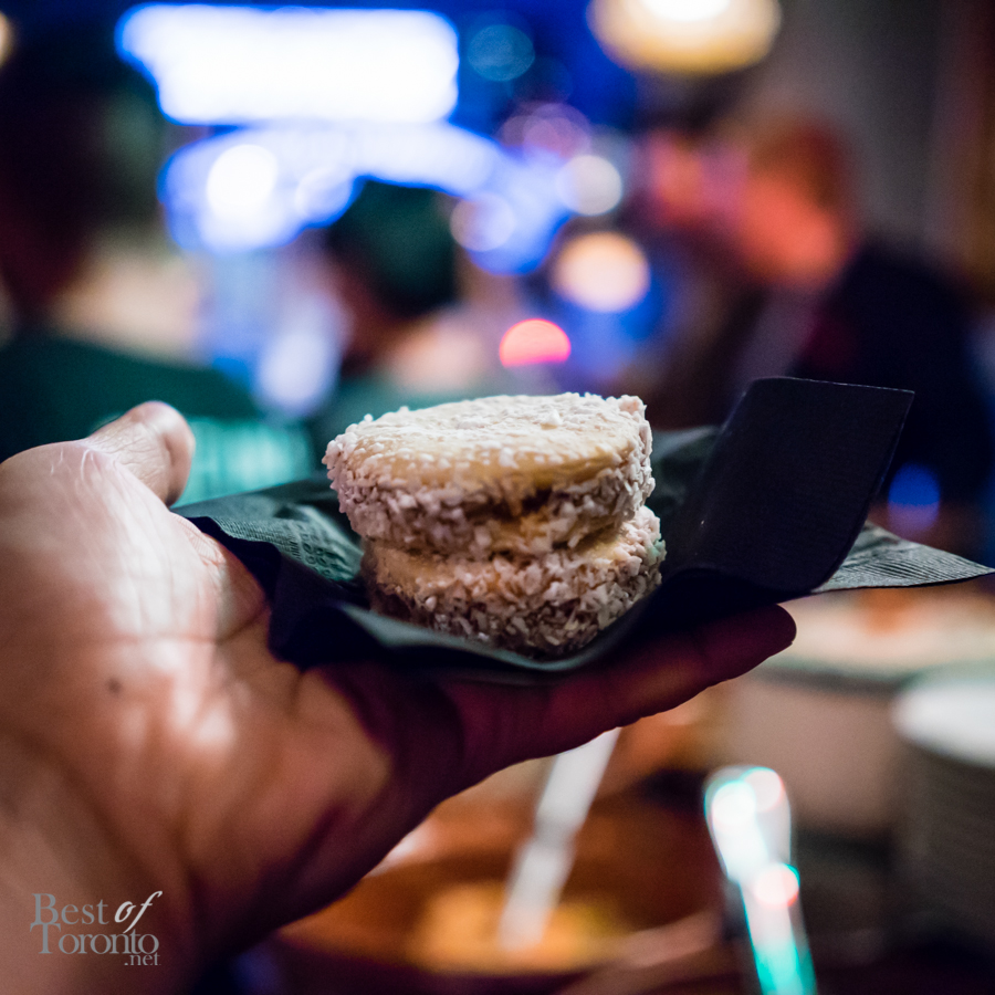 The desserts were also quite delicious. The alfajores is a cookie sandwich with dulce de leche as the filling, and then rolled in coconut. The filling’s sweetness was balanced by the soft and crumbly cookies. The tres leches (three milks) cake was my favourite dessert. It was extremely moist and flavourful; I could have kept eating this all night.