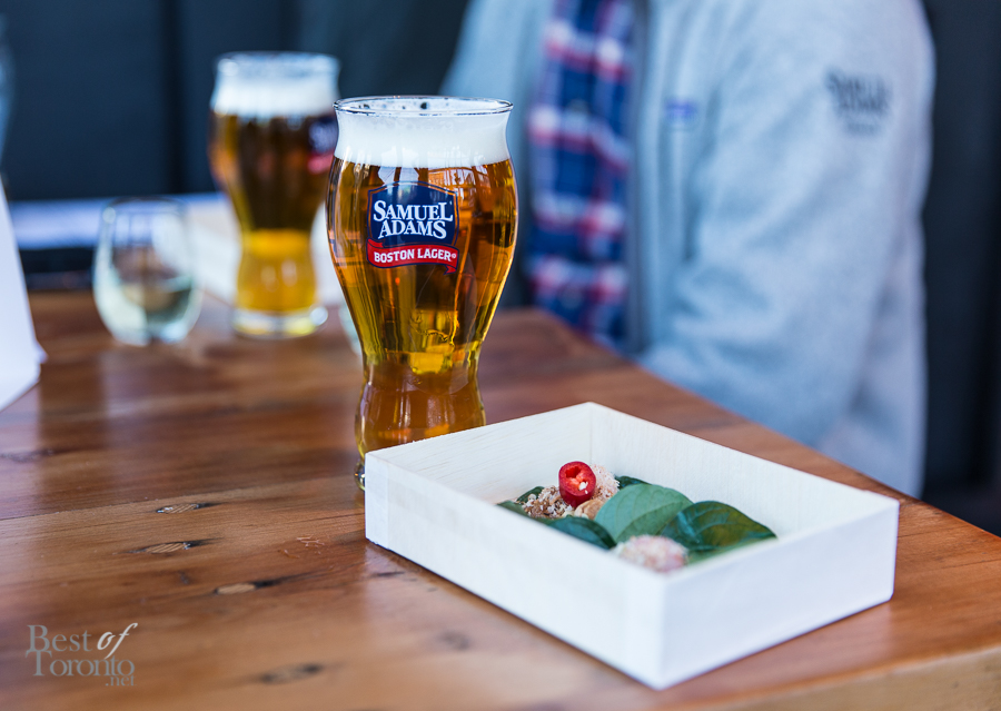 - Betel leaf wrap with shrimp paired with Samuel Adams beer