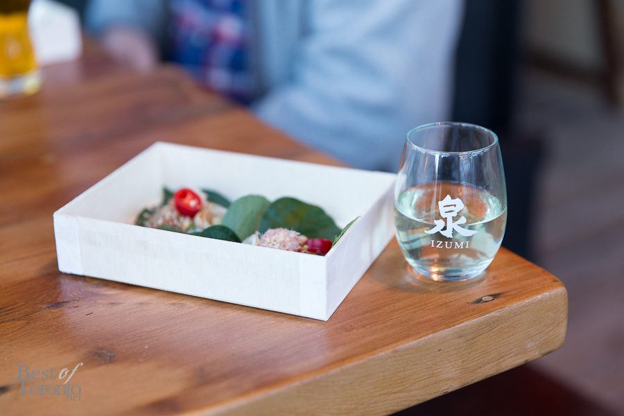 It was also a nice surprise to see Vivian Hatherell (of Metro Wine Sake) who provided crisp locally-made Izumi Ontario sake and Dave Mitton who slung stiff Old Fashioned cocktails for all the guests with Lot 40 Canadian whiskey, both are my favourite! Everyone was happy with the fine spirit pairings, especially me.