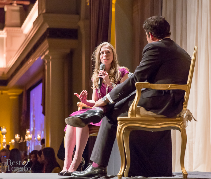Chelsea Clinton spoke on behalf of her family’s Clinton Foundation (also check out our coverage of Bill Clinton’s visit to Toronto’s Berkeley Church in June 2013). Ben Mulroney was the evening’s host for the sold-out gala dinner of 600 guests.