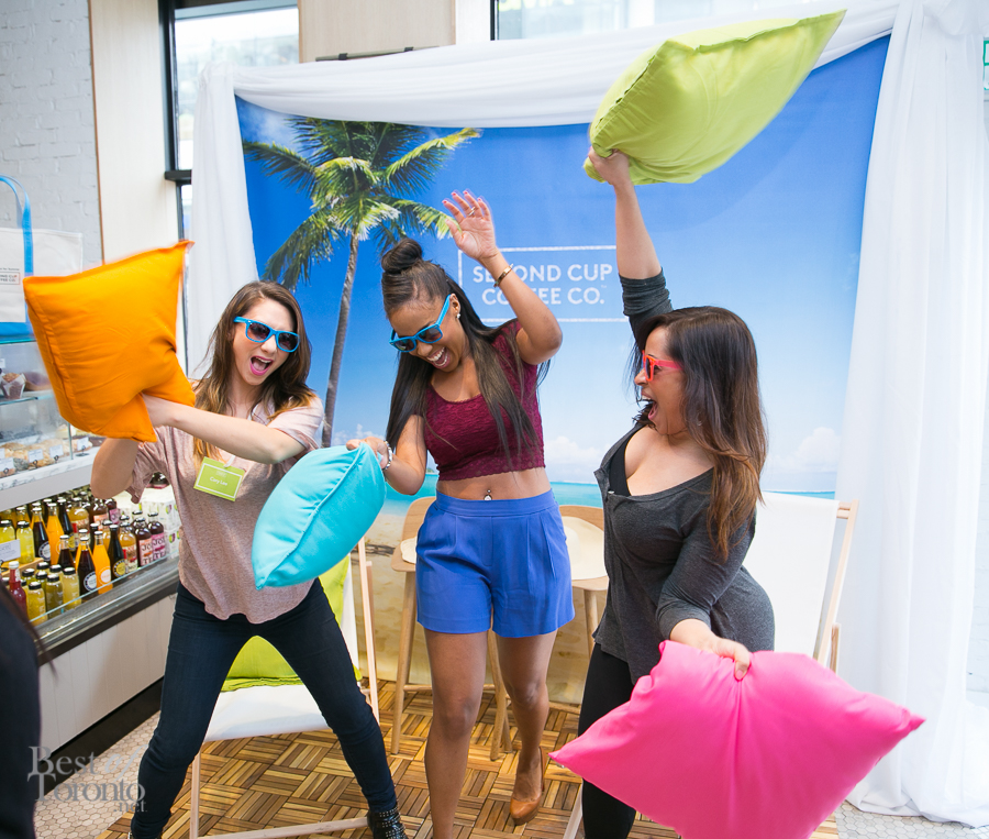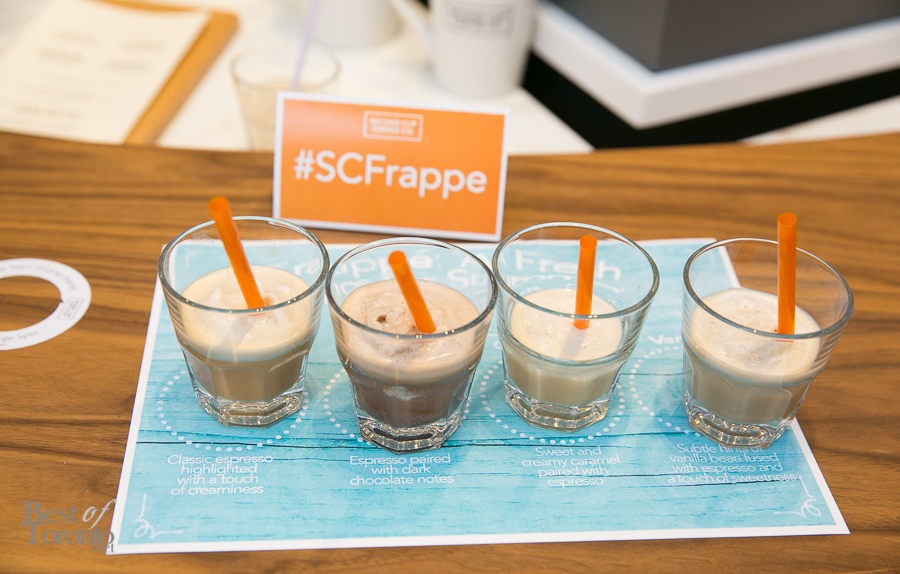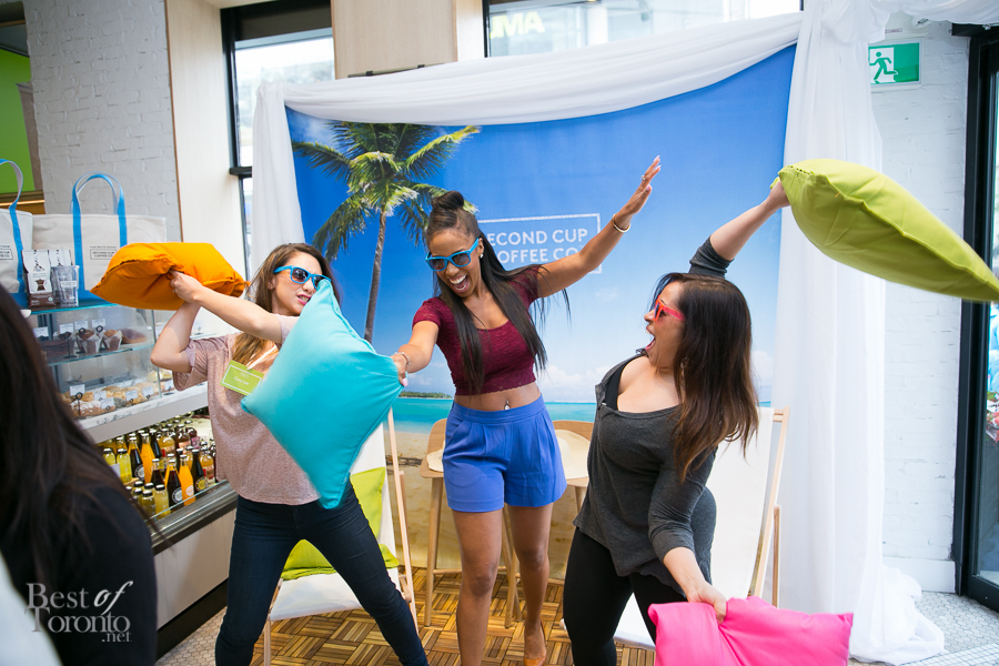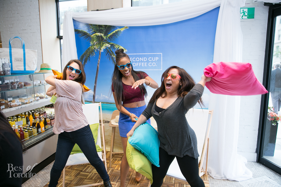 I didn’t know what to expect but what was supposed to be a Second Cup frappe launch on May 11th turned out to be a fun, summer beach inspired event at the Second Cup at King and John St (the one with modernized Second Cup designs including gorgeous new cream and milk taps, marble and more).