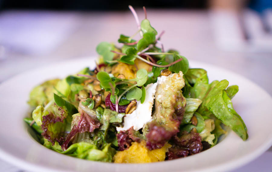 First up, the Torrontes, my favourite of the night, is a bright and floral white wine, with citrus notes and a crisp finish. Conjuring visions of summer barbeques and laid-back patio parties, this is the perfect versatile wine for such occasions. First course of the night, the Field Greens (a pumpkin and ricotta salad with perfectly roasted pumpkin seeds) offered a seamless union with the Torrontes.