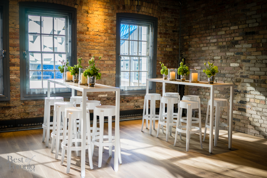 The large rectangular loft-style space can accommodate 120 seated or 180 standing guests. The space is perfect for hosting weddings and social gatherings, as well as corporate functions, seminars, and conference. Aperture Room is located on the 3rd floor at 340 Yonge St. just south of Elm St.