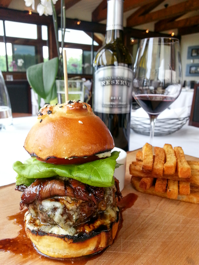 If you’re seeking romantic dining, look no further than 5 Diamond rating Vineyards Estate Winery. Whether you’re eating in the renovated 1845 farmhouse or seated on the patio overlooking the vineyard, the picturesque setting is the ideal place to try their ever-changing tasting menus. Or if you’re seeking one item that will make your fellow diners envious, get the “VEW” Burger. Born and raised in the small town of Vineland, Chef Justin Downes has great relationships with nearby suppliers and uses local ingredients. The beef is 100% chuck from Cumbrae’s, it is generously drapped with thin slices of jus drenched sous- vide beef tongue over top of it. And with assertive Bleu d’Elizabeth at the base of the house-made challah bun, the towering wonder is a decadent dish to devour. As you satisfy your carnal cravings, you’ll love to lap up their Reserve 2012 Cabernet Franc with it. Recommended by their Sommelier Sarah, this red has body and is smooth as silk. Another not-to-miss dish: their Heirloom Beet Salad. Local beets are lightly pickled and nestled beside house-cured salmon. The buttery fish pairs perfectly with their crisp, refreshing 2012 Chardonnay.