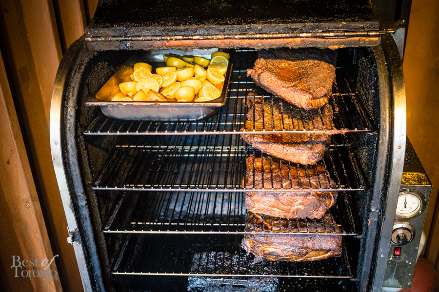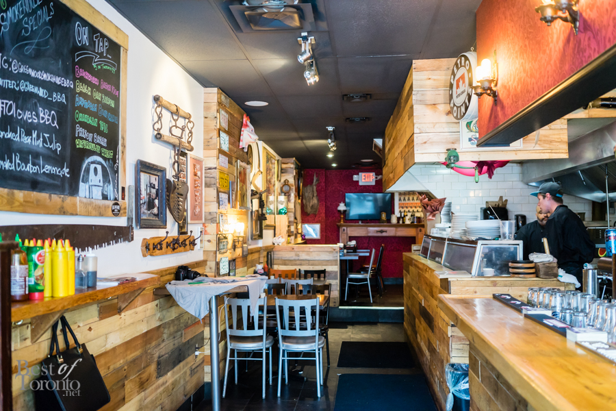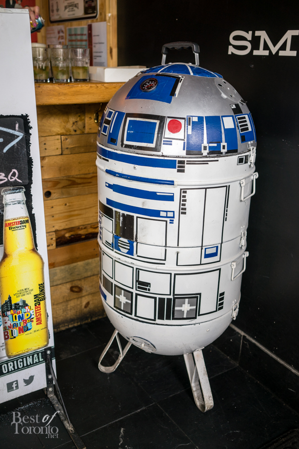On June 15, we made a trek to Toronto’s Greektown to visit Greenwood Smokehouse BBQ and checkout their new summer menu. Upon entering, we were greeted with a smoked pear mint julep, and by R2BBQ – a smoker painted to look like the iconic R2D2 from Star Wars. Already we knew we were in for a great night ahead – read to see how the evening went.