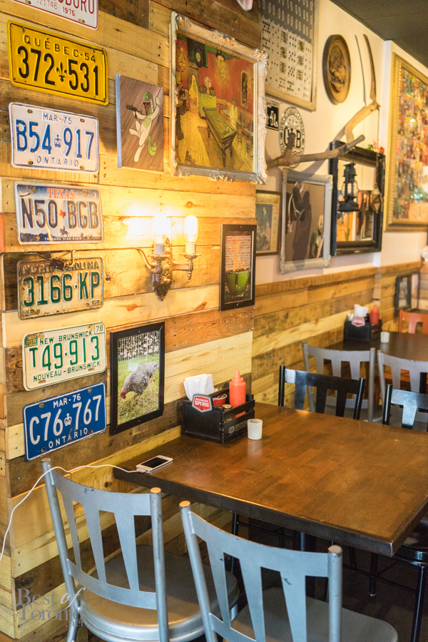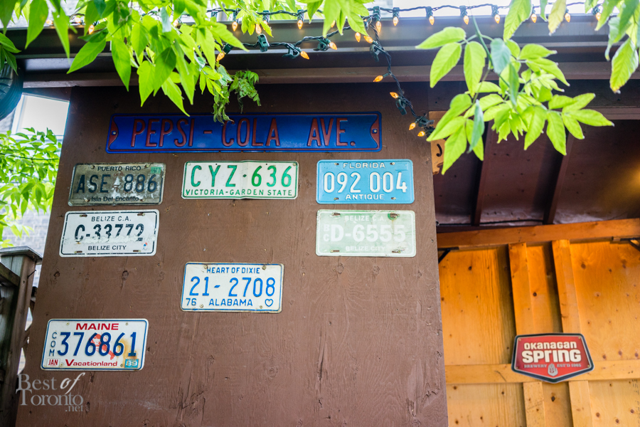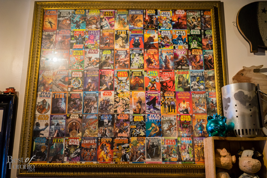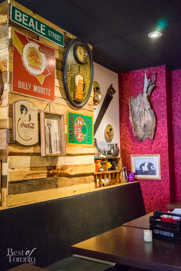 We took our drinks to the back patio, and while walking through the restaurant, it was hard not to notice the eclectic decor. The walls were adorned with an interesting mix of pop art, license plates, street signs, animal tchotchkes, and even Star Wars comics. It’s a mix of art that you wouldn’t expect, yet it all works together and collectively adds to the charm and coziness of the place.