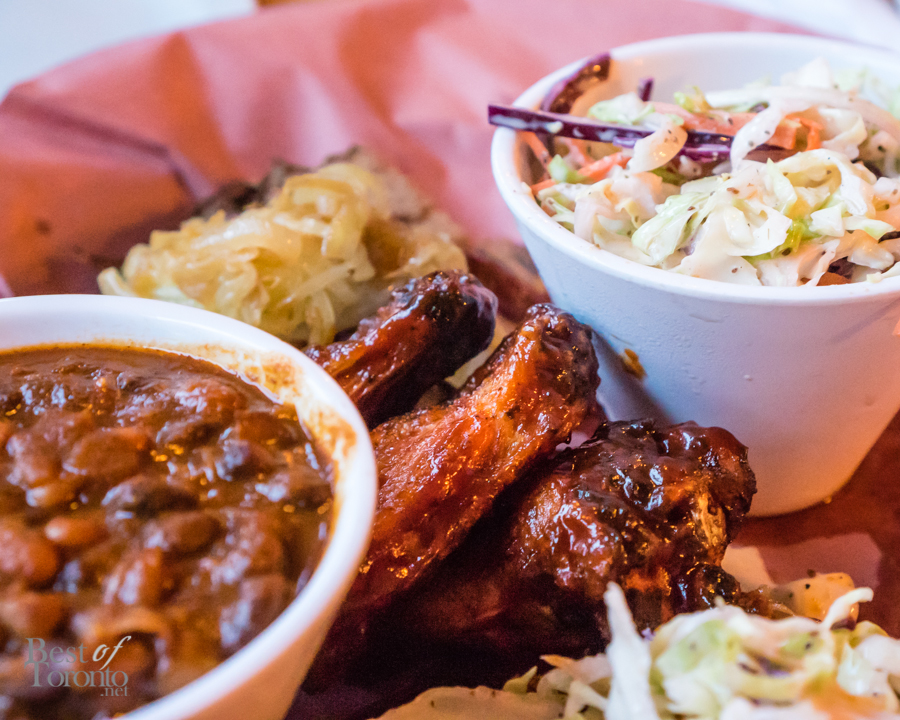 - Brisket, pulled pork, smoked wings, coleslaw, beans