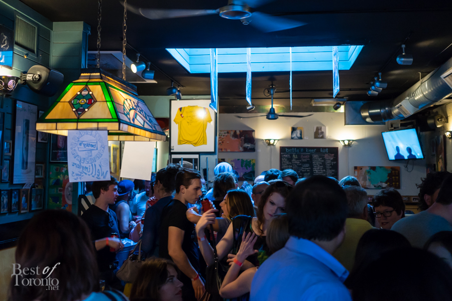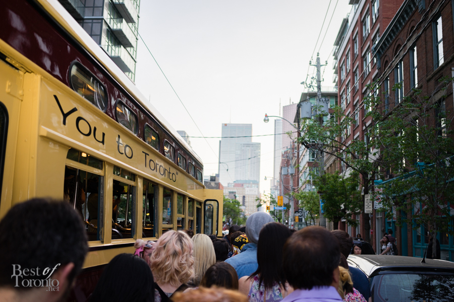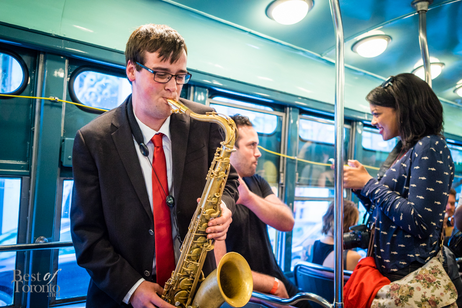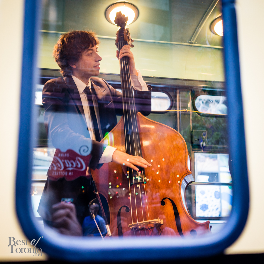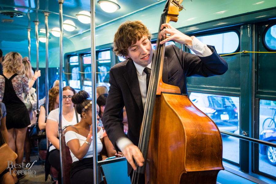 Just outside Betty’s we proceeded to board a vintage streetcar, no longer in service, but specially commissioned just for the special event. Inside guests enjoyed live music from a jazz trio, and feasted on hotdogs from Fancy Franks. The streetcar took a route all around downtown Toronto, going through Queen West, Chinatown, the waterfront, and eventually stopping in King West. Passengers disembarked and continued the party at the Firkin on King, where they enjoyed bites and the Queen Street 501 cider.