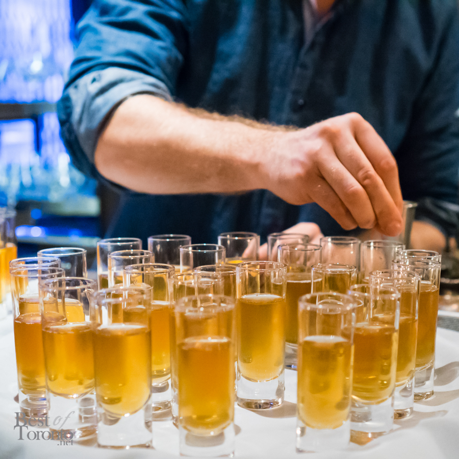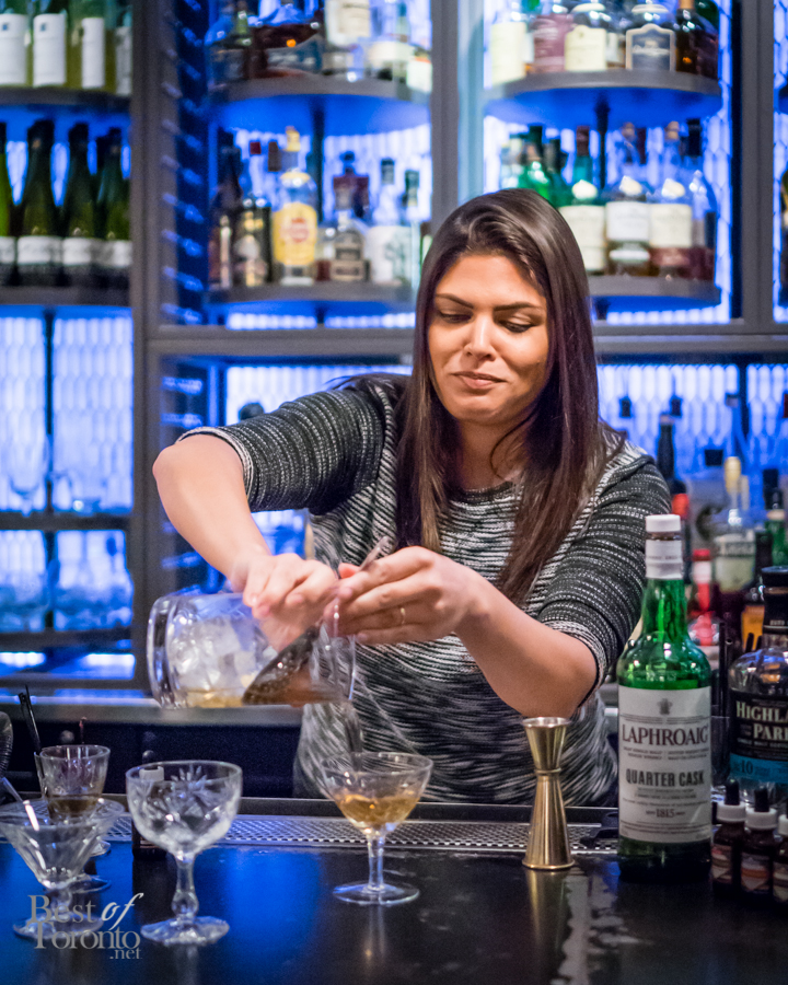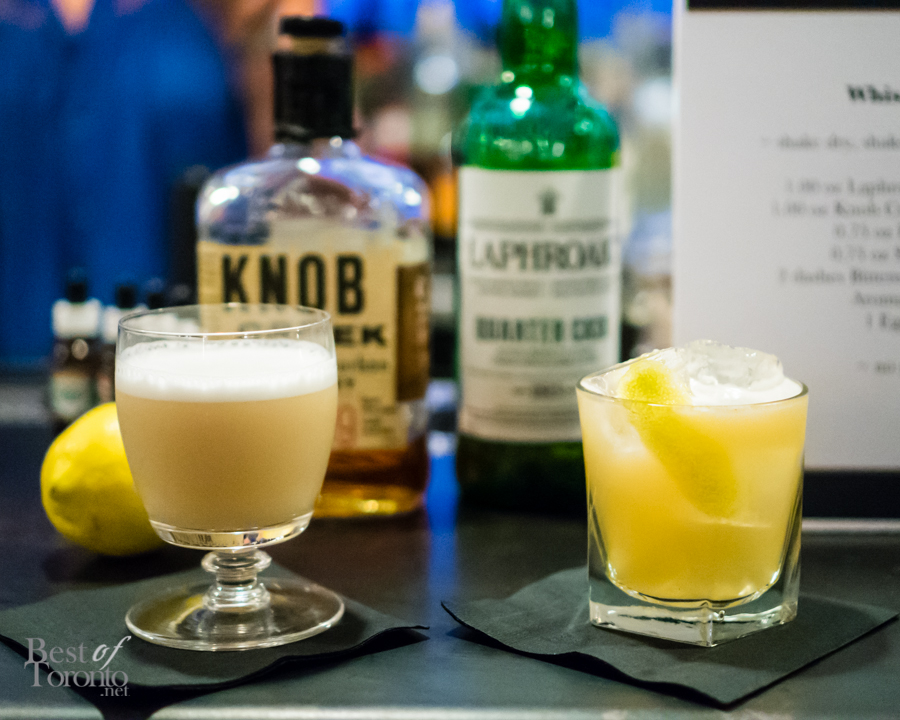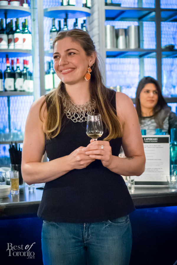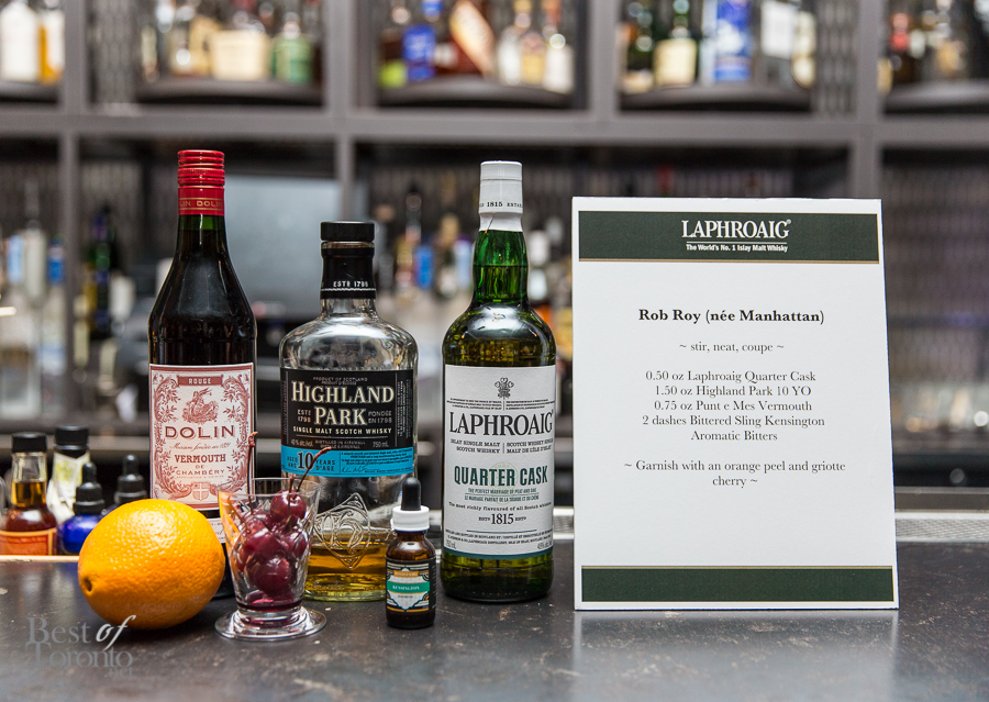 After a short break, we then headed to the bar area where we got a mixology lesson from three Vancouver bartenders, Lauren Mote, Danielle Tatarin, and Christina Kuypers. Mote is co-proprietor of Bittered Sling Bitters, and bar manager at UVA Wine & Cocktail Bar. Each of them demonstrated in turn how to make three classic cocktails made using the Laphroaig scotch whiskies – the Whisky Sour, the Old Fashioned, and the Rob Roy (aka Manhattan). We’ve provided the recipes below, so be sure to bookmark this page. The three women were beautiful and charming; engaging and capturing the attention of the crowd. One memorable quote from the night came from Tatarin. When asked her opinion of Laphroaig, she said, “Laphroaig is the only marriage I’m willing to commit to!”