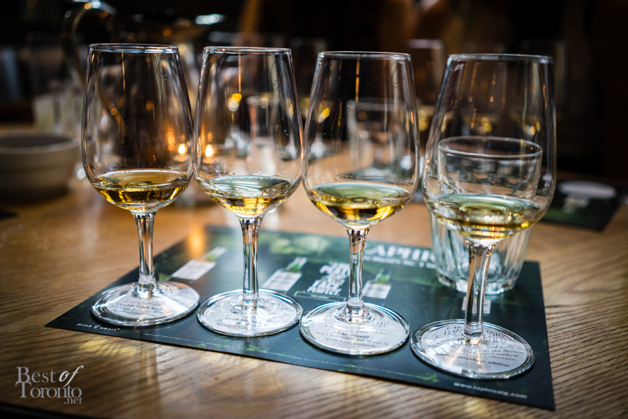 We began with some passed canapés, antipastos, and a sampling of the Duke of Argyll cocktail (recipe below). It was then on to a structured tasting session with Campbell. We sampled four different whiskies: Laphroaig 10 Years Old ($80.95), Laphroaig Quarter Cask ($72.95), Laphroaig 15 Years Old (200th anniversary special edition) ($185.95), and Laphroaig 18 Years Old ($165.95); prices are for 750 mL bottles. Of these, my favourite was the Laphroaig 18 Years Old, for its sweetness, chocolate and toffee accents, with hints of saltiness and smoke.