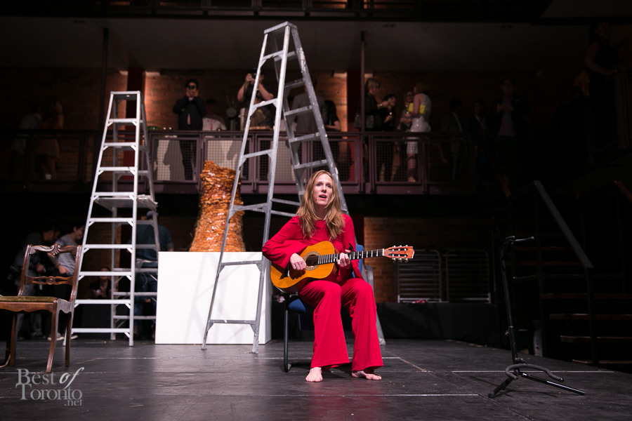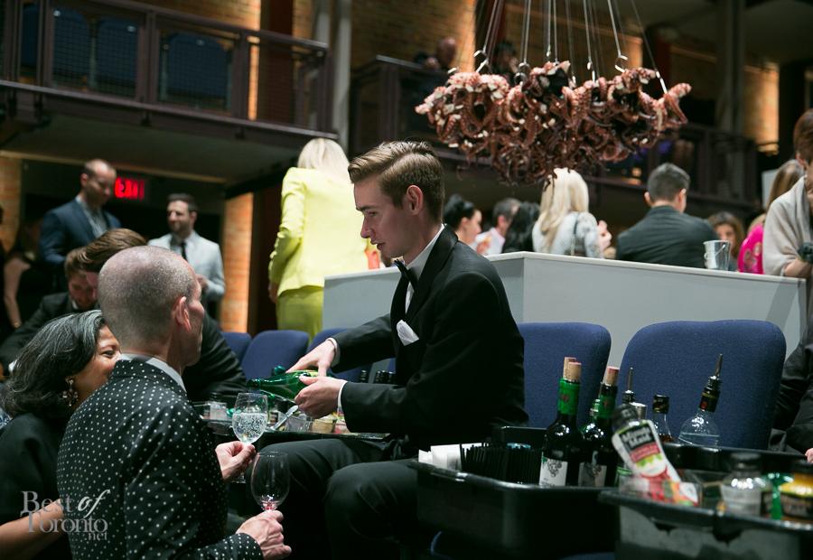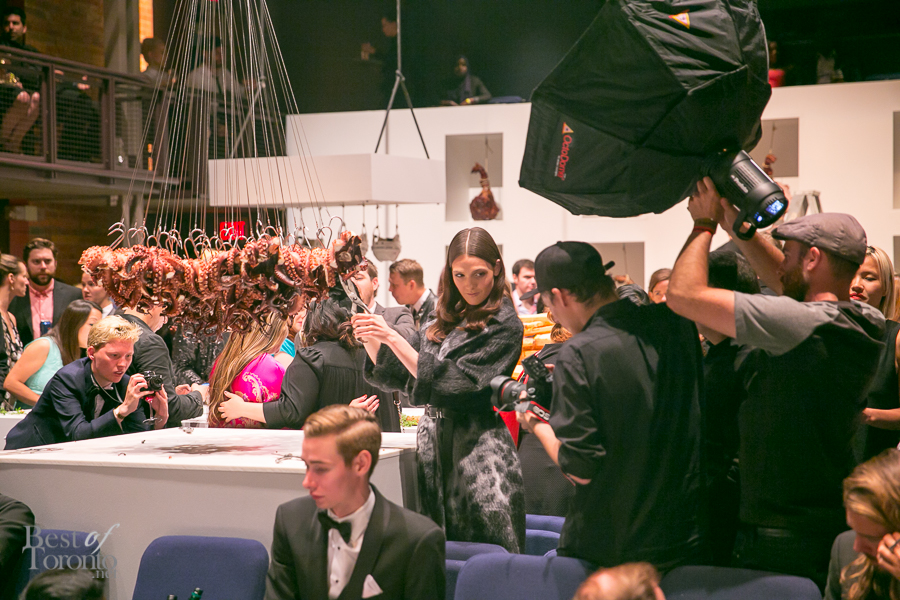 The night kicked off with an art performance and food installation for the VIPs, with decadence and debauchery being the key themes. Guests were treated to gourmet food and cocktails under the direction of chef Grant Van Gameren of Bar Isabel, sponsored by the Drake Hotel. As just one of the many food experiences, guests served themselves from a hanging chandelier of octopus.