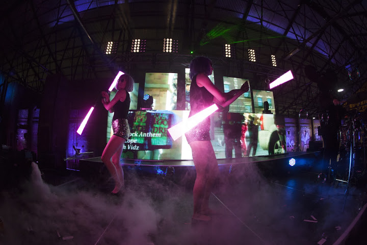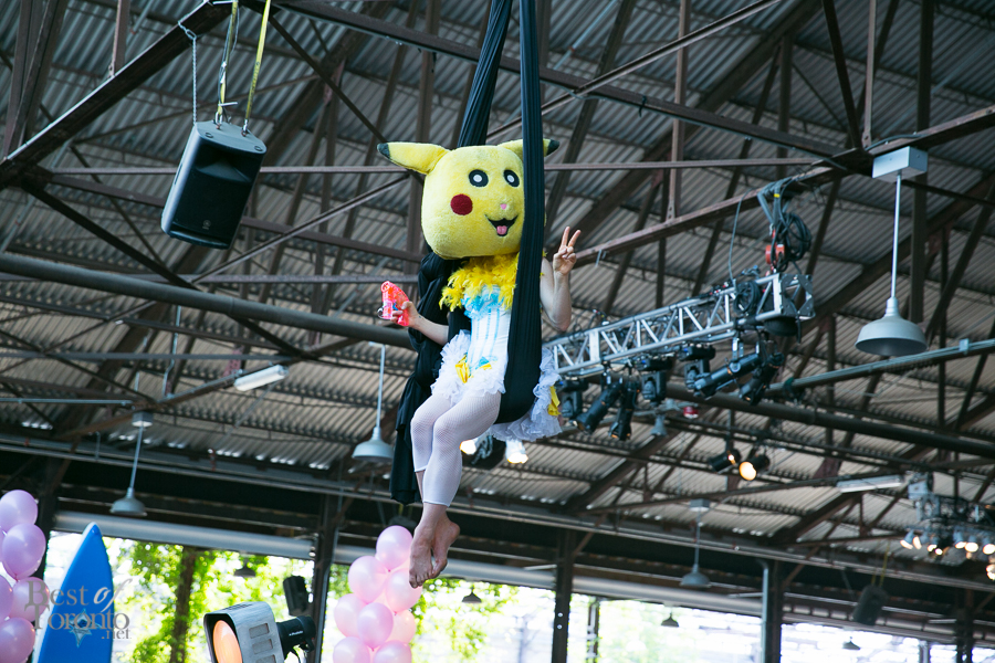 Guests were greeted at the door with Pikachu and Hello Kitty blowing bubbles from above with the help of electric violinist, Sarah DG Violin, dressed as a harajuku girl.