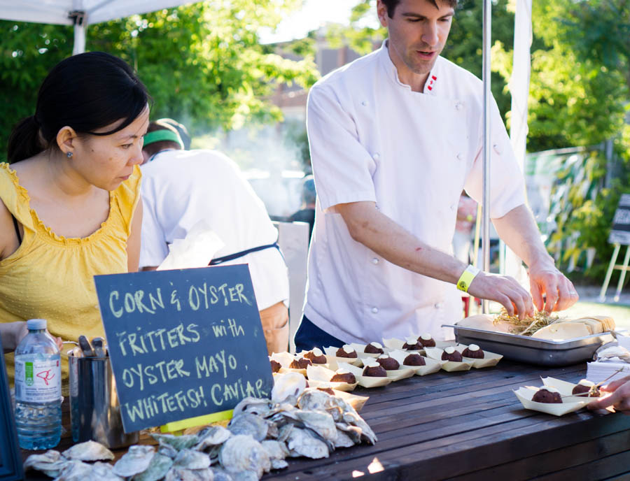 The hardest working team at The Stop was none other than the “oyster boys” – Adam Colquhoun, the boy behind Oyster Boy, and his sidekick Robin Jenkens. Shucking up briney and buttery goodness for the long line with consistency and determination, the two certainly had their work cut out for the night.