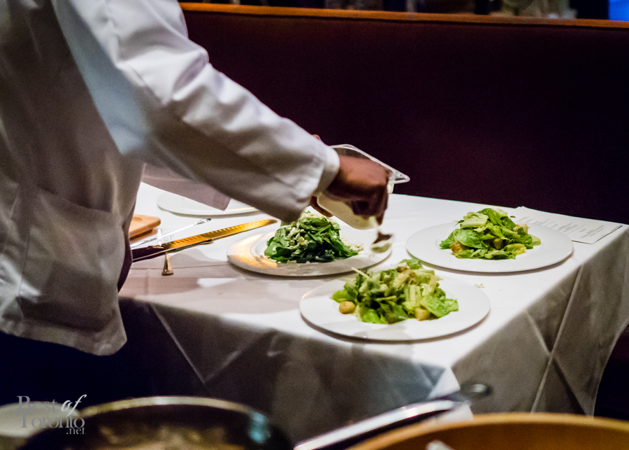 Let me first humbly say that Tableside Service is no small feat. It’s one thing for wait-staff to provide stellar service and bring dishes to your table, but quite another to up the ante and have them responsible for cooking the meals in front of you as well. No pressure, of course. But seriously, that in itself, demands respect. I tip my hat to all those who served me that evening with such graciousness. It’s rather remarkable to see all of them in some sort of synchronized dance: one gliding over to top up glasses without asking, another side-stepping to pull out your chair for you as you get up. But here’s the thing– this ‘live’ and ‘interactive’ performance is done elegantly– but more importantly, results in delicious tasting food.